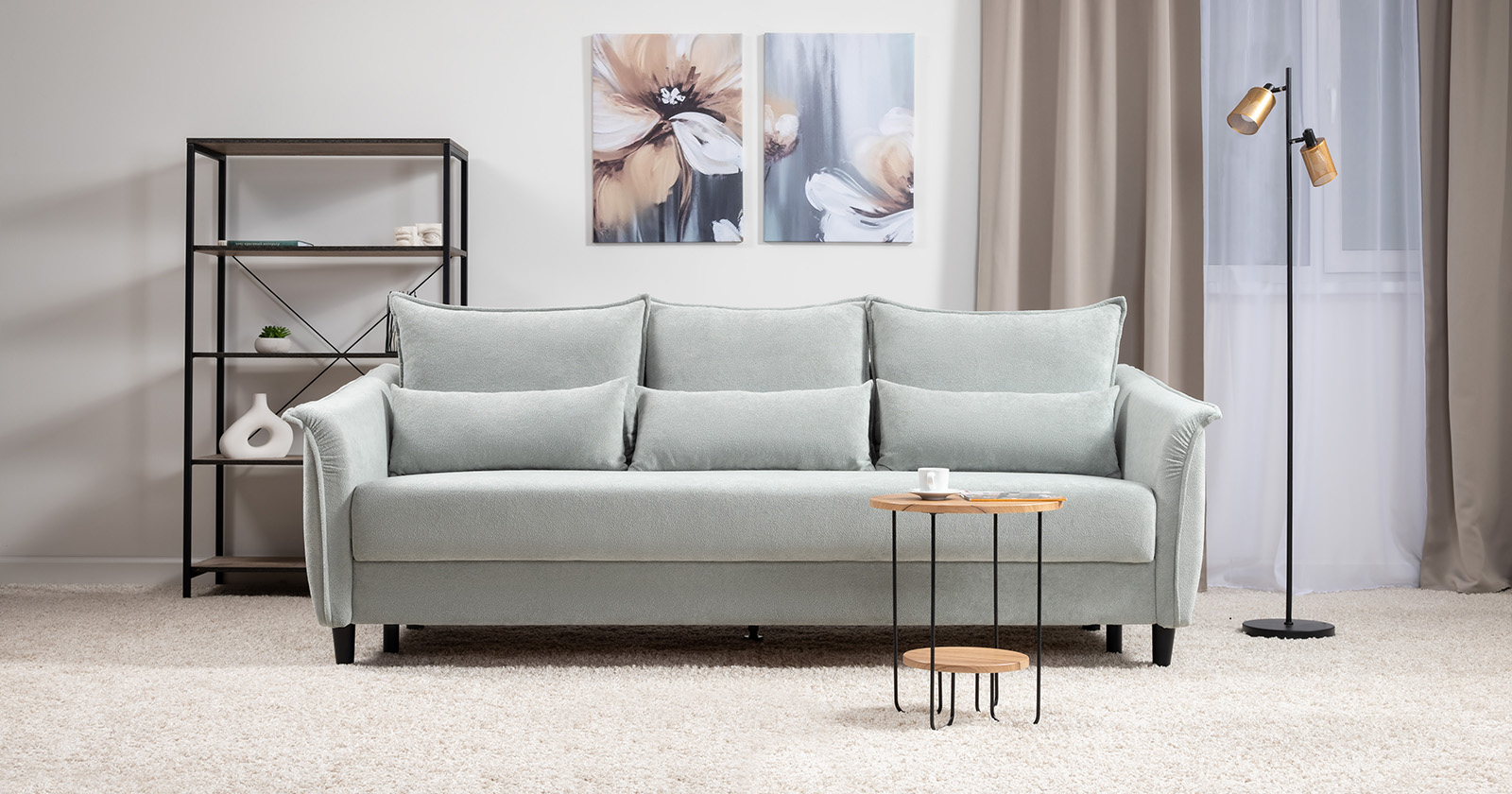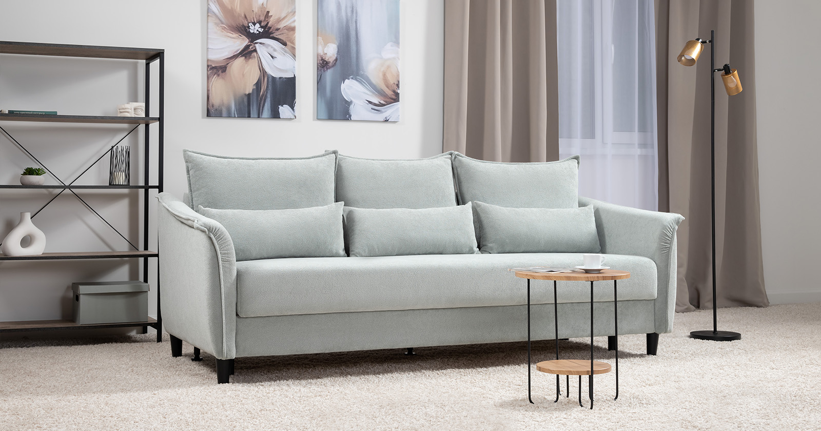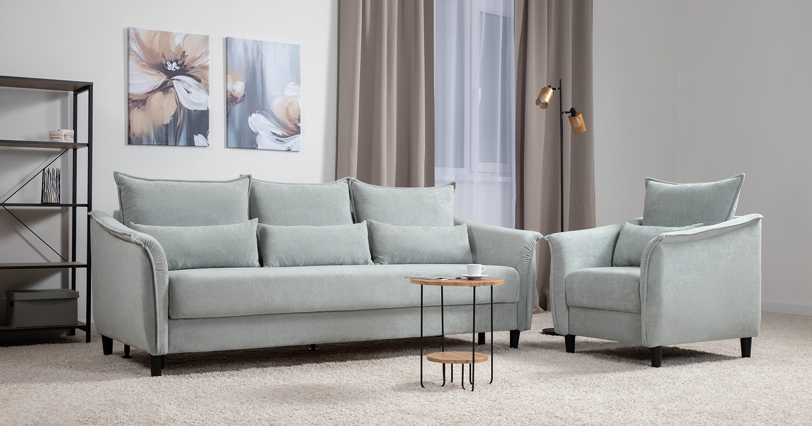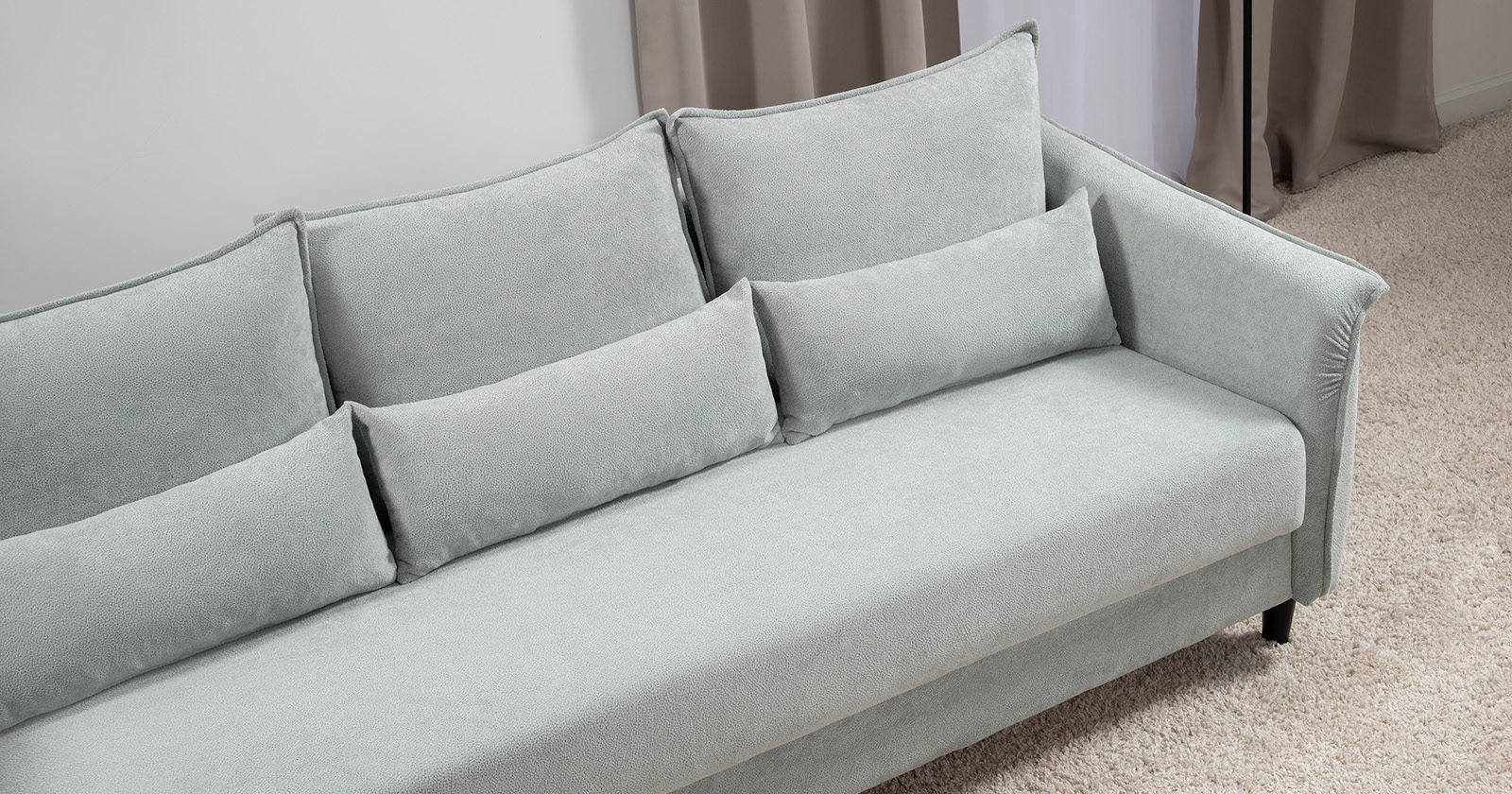 Изогнутые подлокотники в форме лепестков придают коллекции изысканный и элегантный вид, а дополнительные декоративные подушки обеспечат поддержку тела и помогут уютно устроиться на диване. В наполнении дивана используется высокоэластичная пена, которая адаптируется к форме вашего тела и гаранитует максимальный комфорт во время отдыха.
