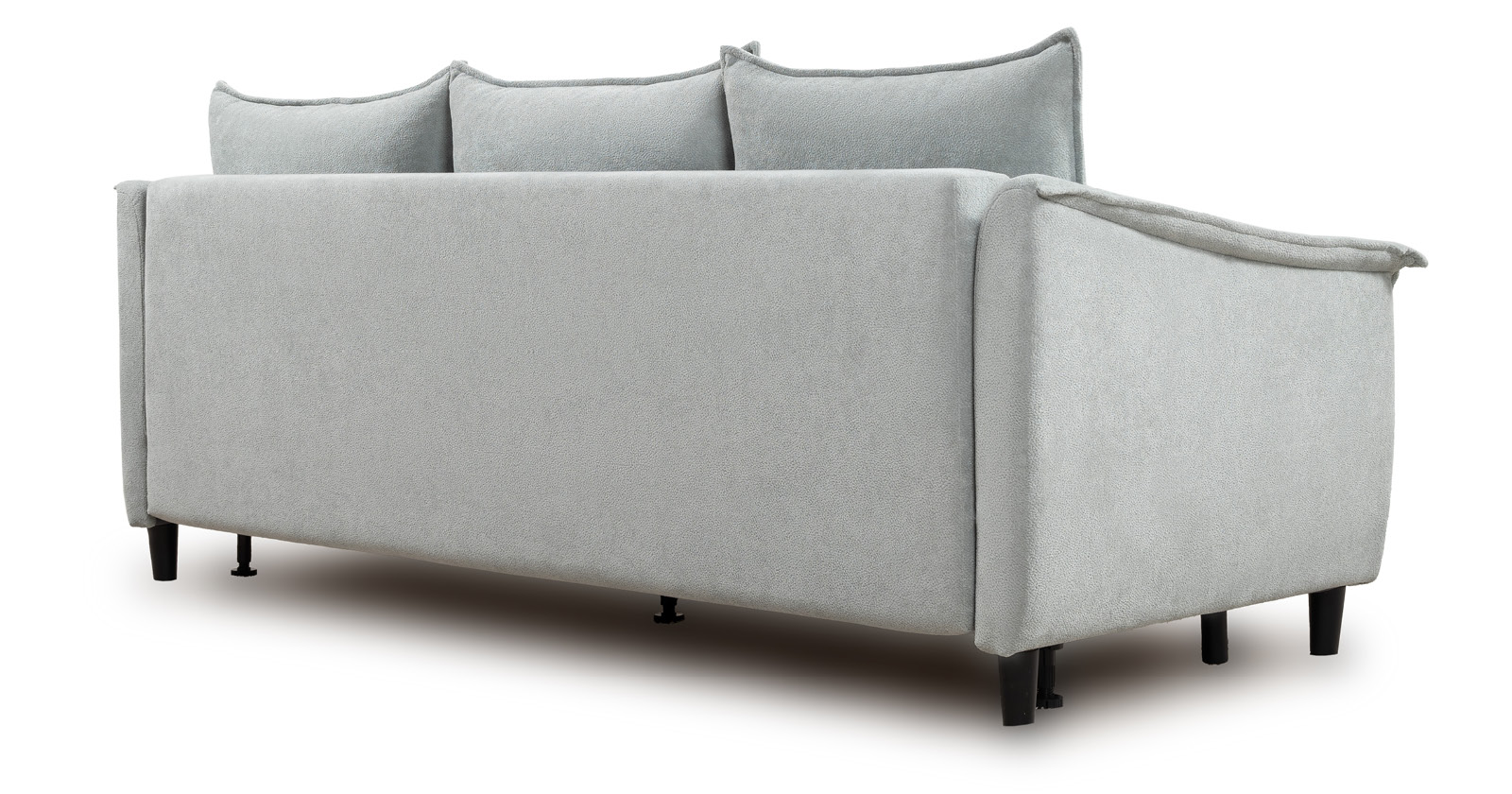 Спинка с тремя приспинными подушками. Две подушки трапецивидной формы, центральная квадратной формы на молнии, по трем сторонам которых проложена отделочная строчка на 1,2 см. По контуру боковин проложен декоративный кант на 1,2 см из основной ткани. Кант проходит по центру передней части боковины, а по внутренней верхней части сборка.