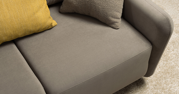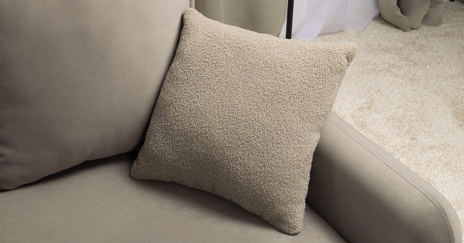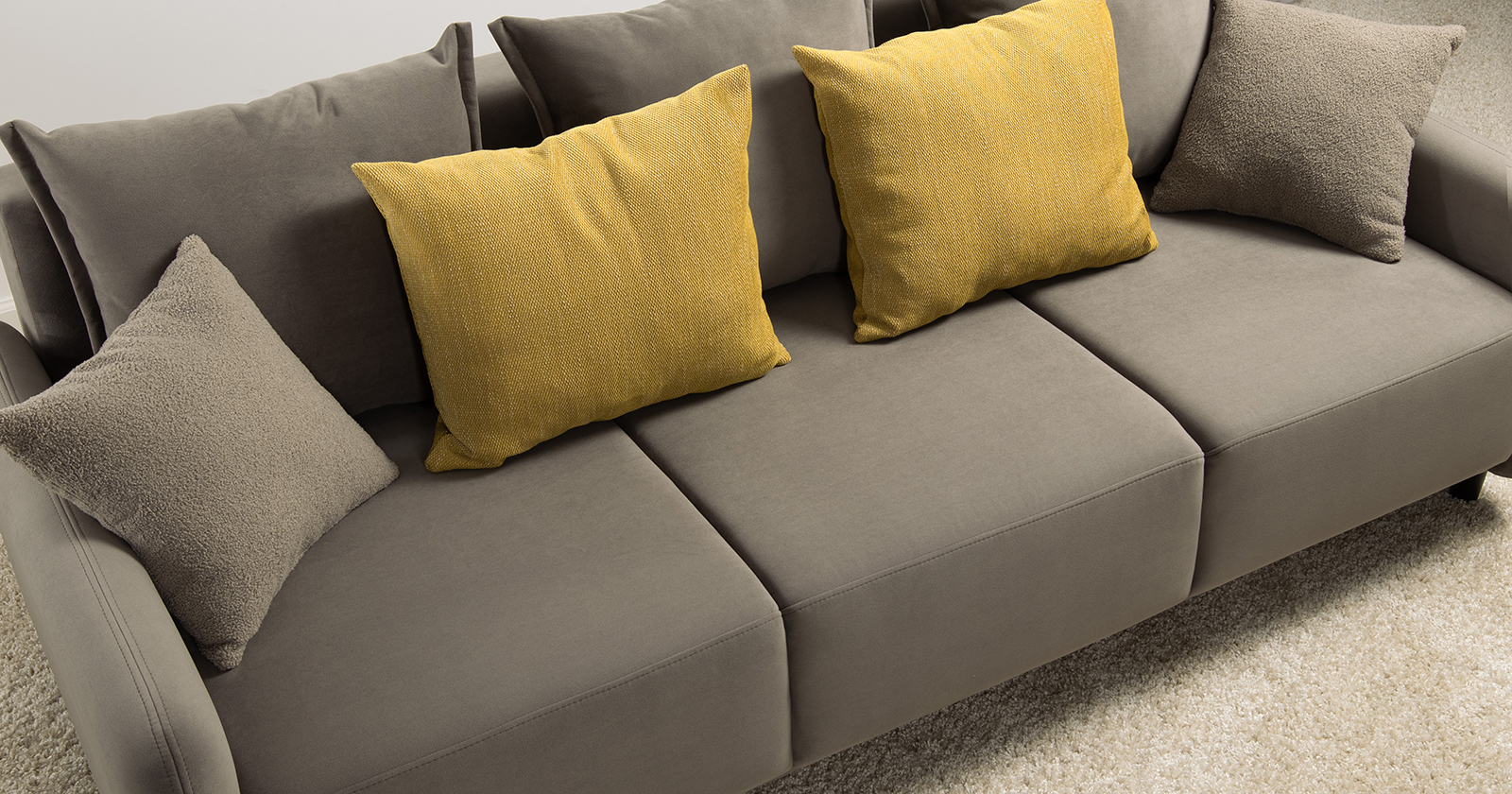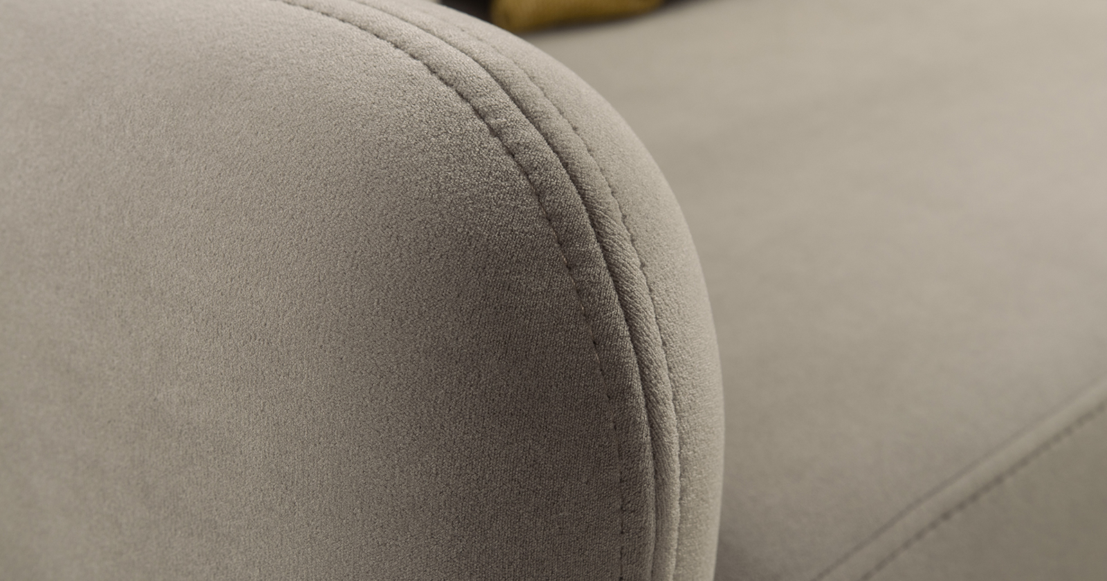 В комплекте 5 двусторонних приспинных подушки и 2 декоративные думки. Задняя спинка в ткани основы. Декоративные отделочные строчки по боковинам и сиденью