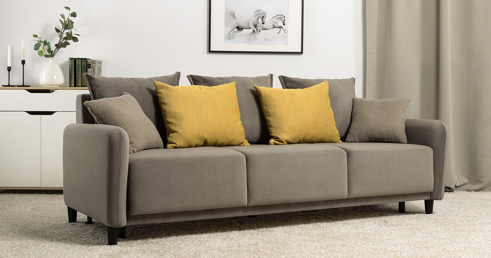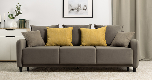 Диван-кровать прямой Дакота ТД 583 велюр Vendetta 10 серо-коричневый, Riga 1598 z1 col 34 горчичный, Romeo 03