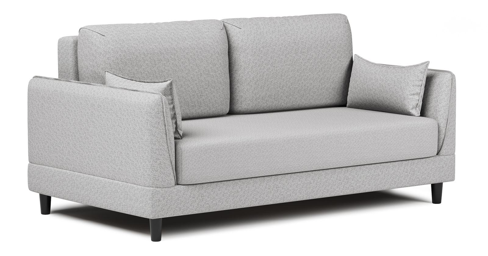 Лаконичный дизайн с деревянными ножками и узкими подлокотниками удачно дополнит не только интерьер гостиной, но и кабинета, и кухни. Кроме того, диван Макс позволяет организовать спальное место в ограниченном пространстве.