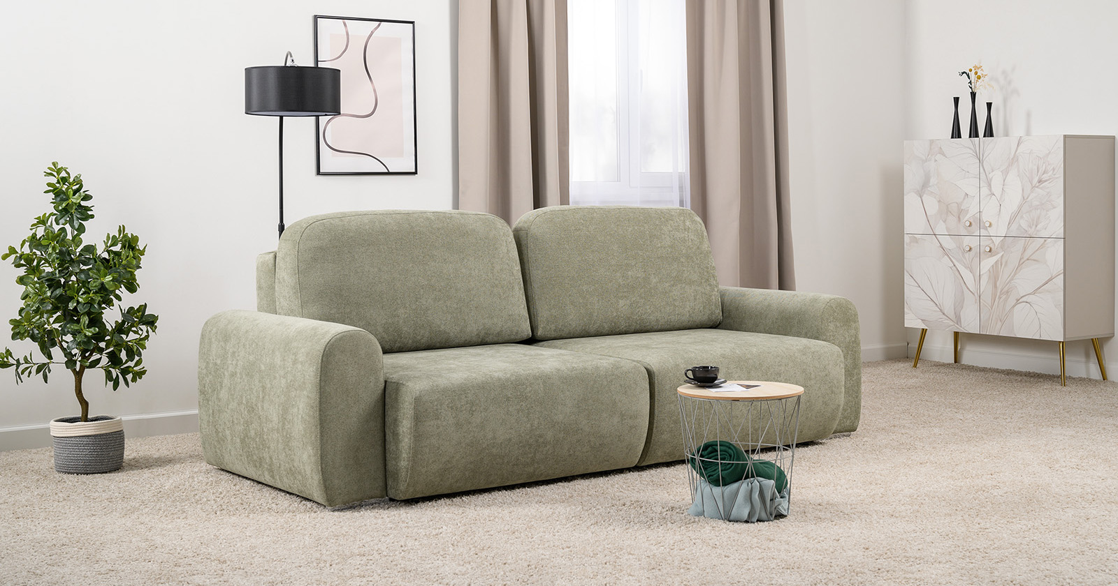 Диван-кровать прямой Тэдди 1503 композиция 1, букле Pique 007 оливковый, модульная система