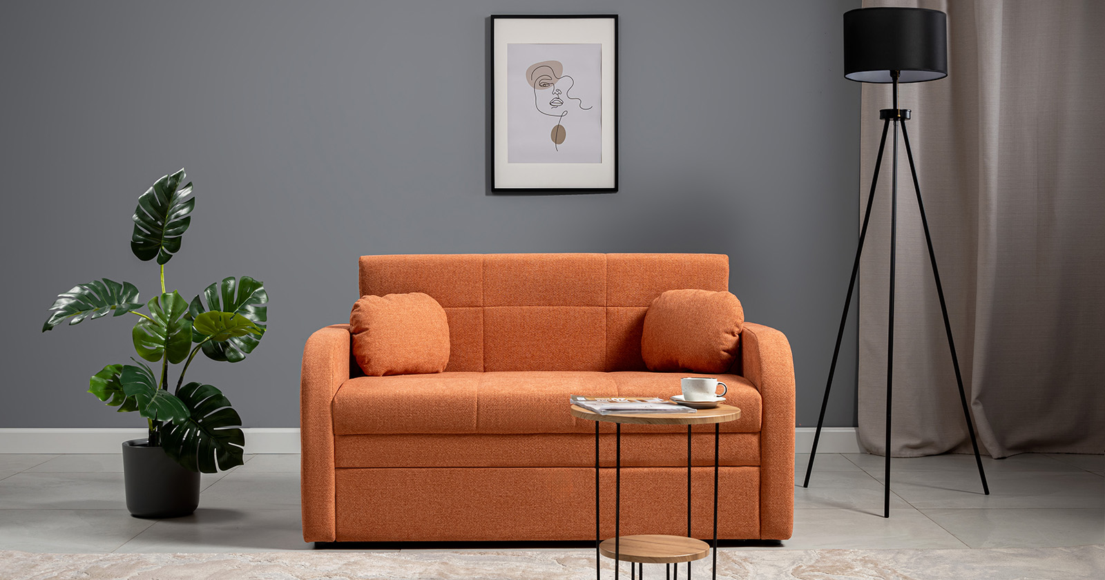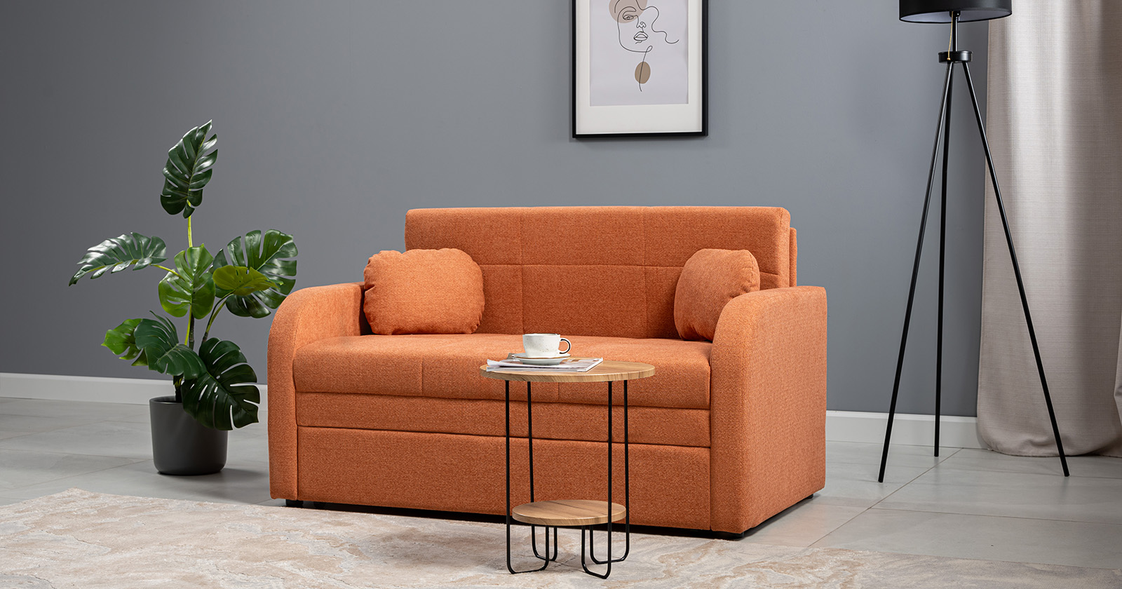 Коллекция выполнена в современном минималистичном стиле с мягкой обивкой из износостойкой ткани и декоративной стежкой, подчеркивающей геометрию форм. Механизм трансформации обеспечивает дополнительное спальное место, делая мебель не только эстетичной, но и максимально функциональной для небольших пространств.