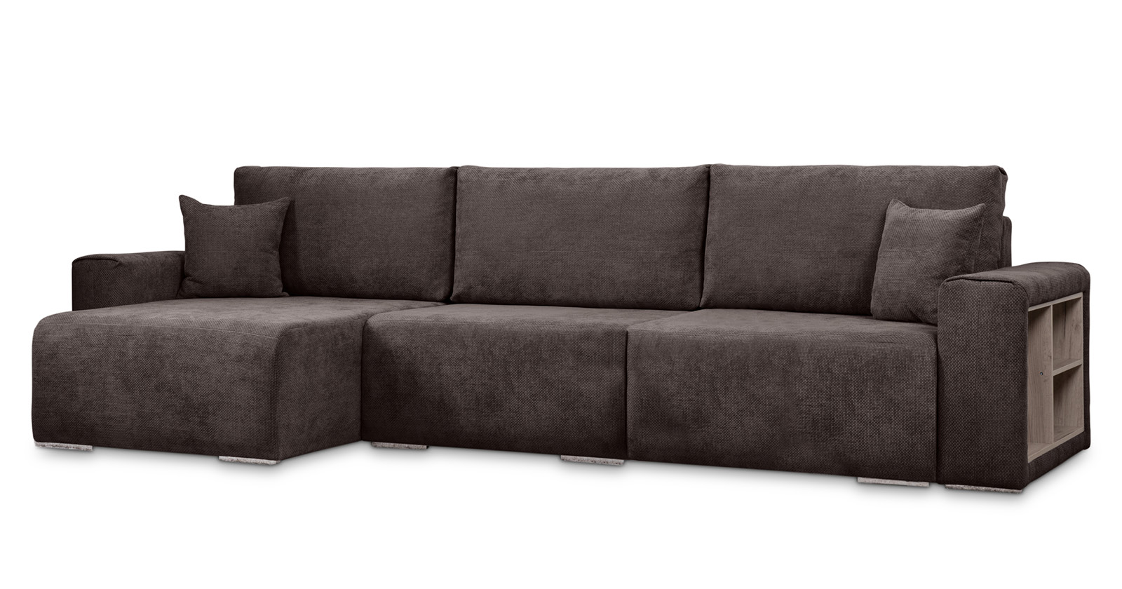 Диван-кровать угловой Оксфорд 711 композиция 2, Muza 06 темно-коричневый, модульная система, сборка на любую сторону