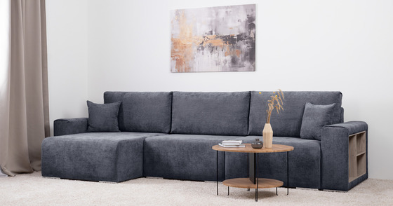 Диван-кровать угловой SMART 1 правый, велюр Velutto 19 темно-серый (2Т-1Пф)