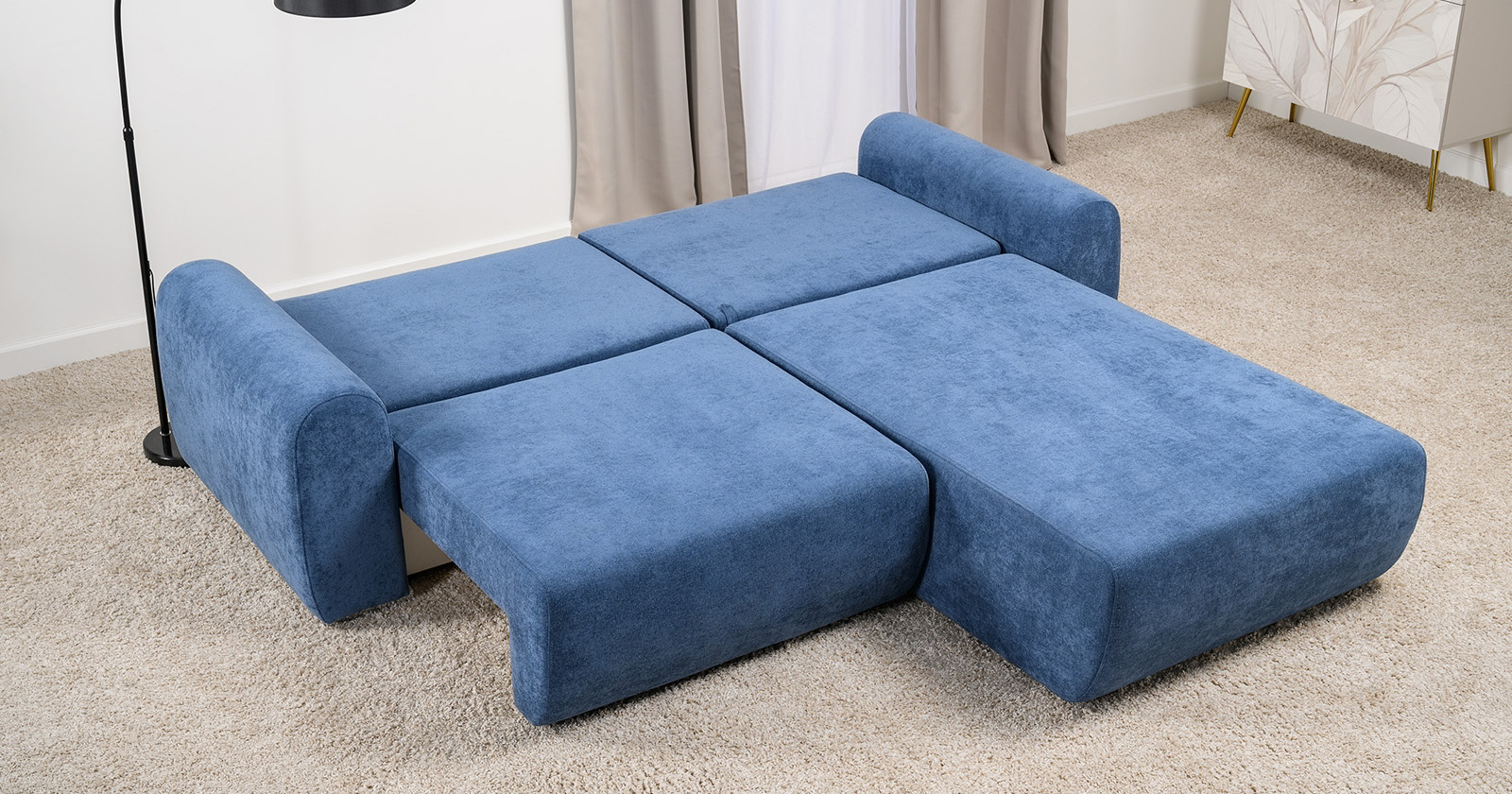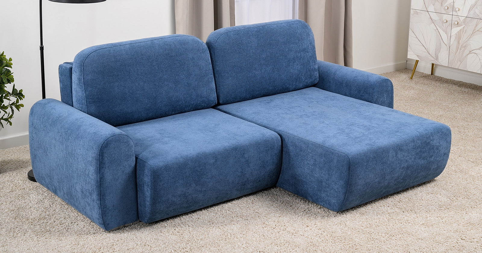 Диван-кровать угловой Тэдди 1504 композиция 2, букле Pique 009 синий, модульная система, сборка на любую сторону