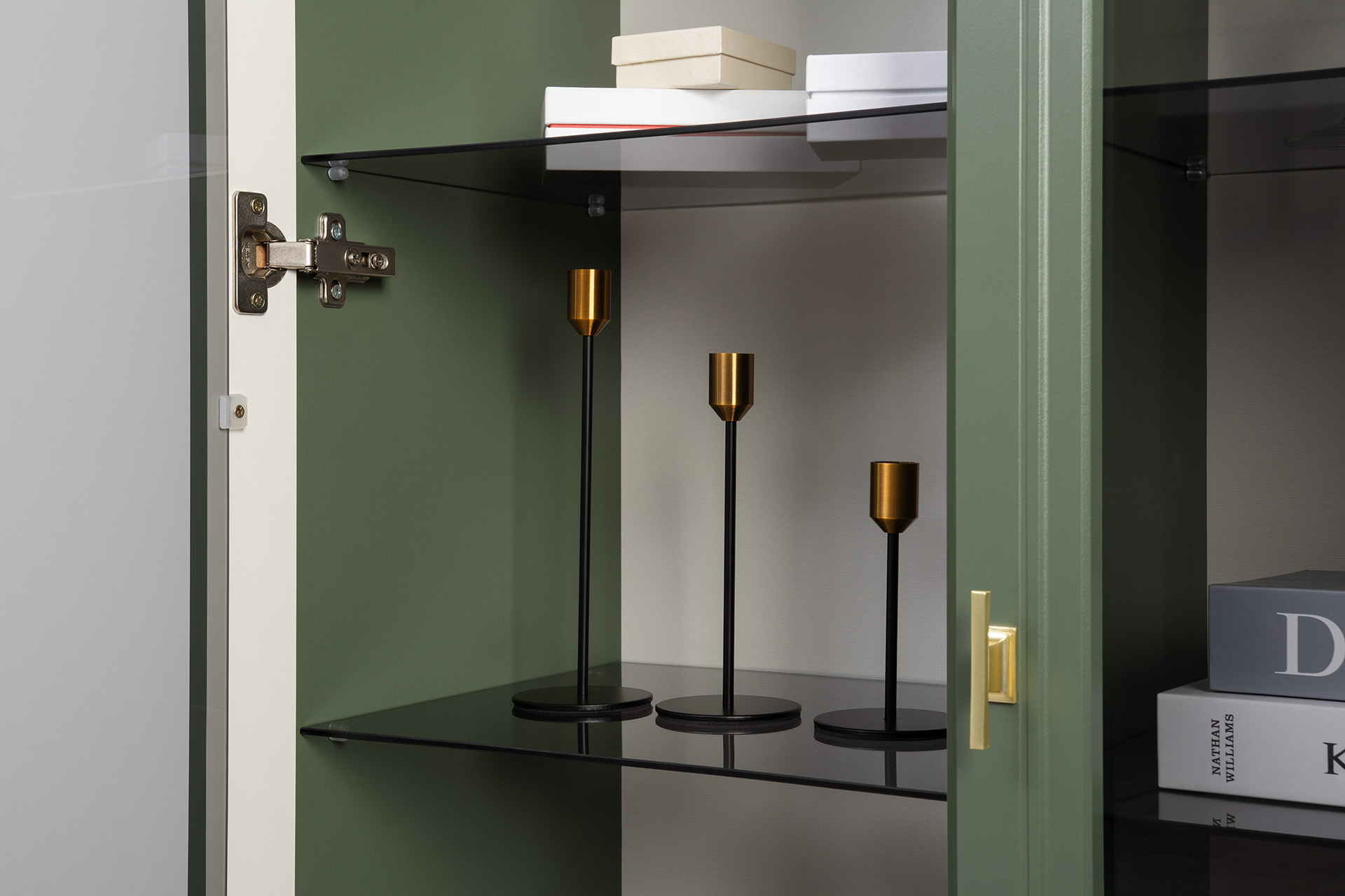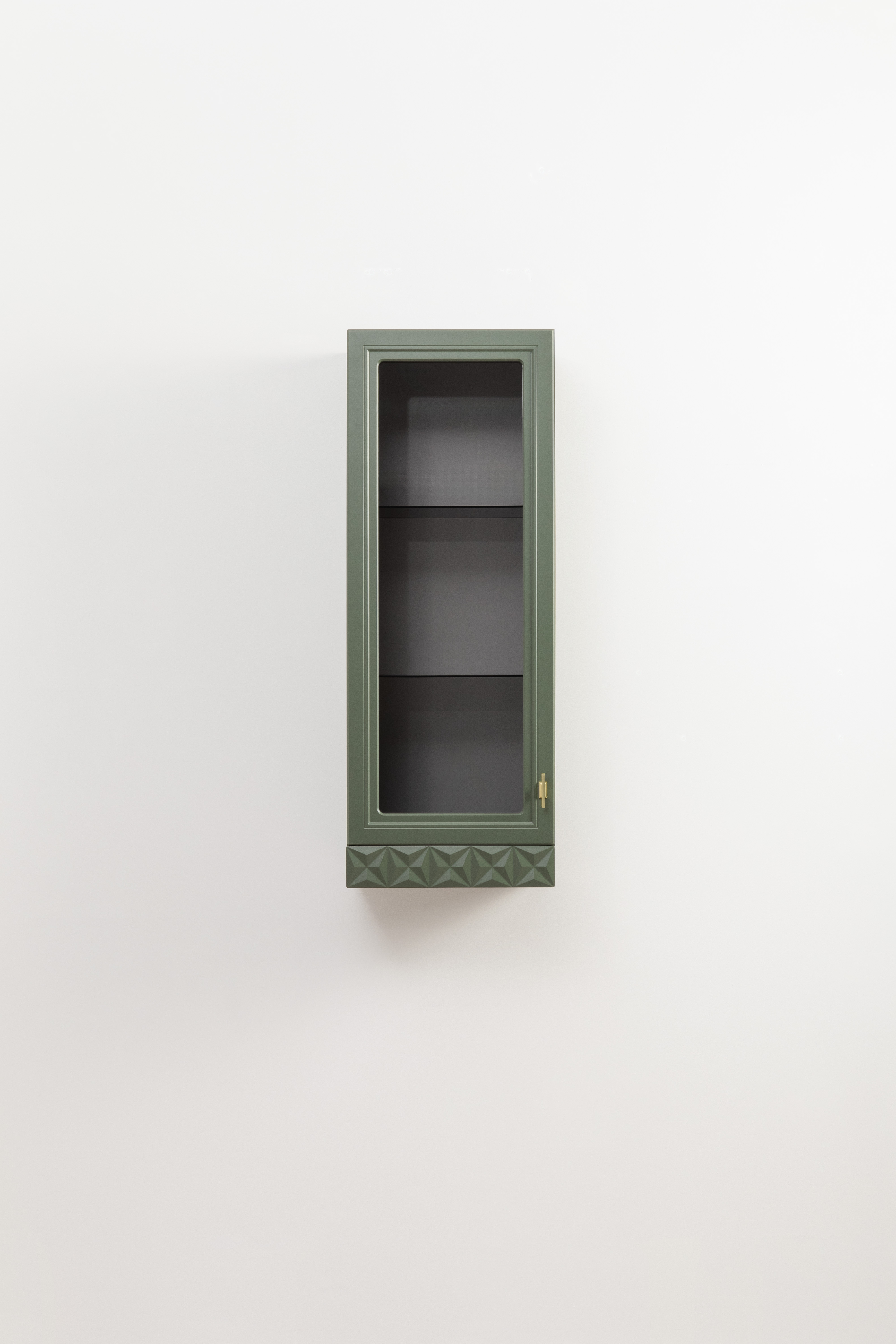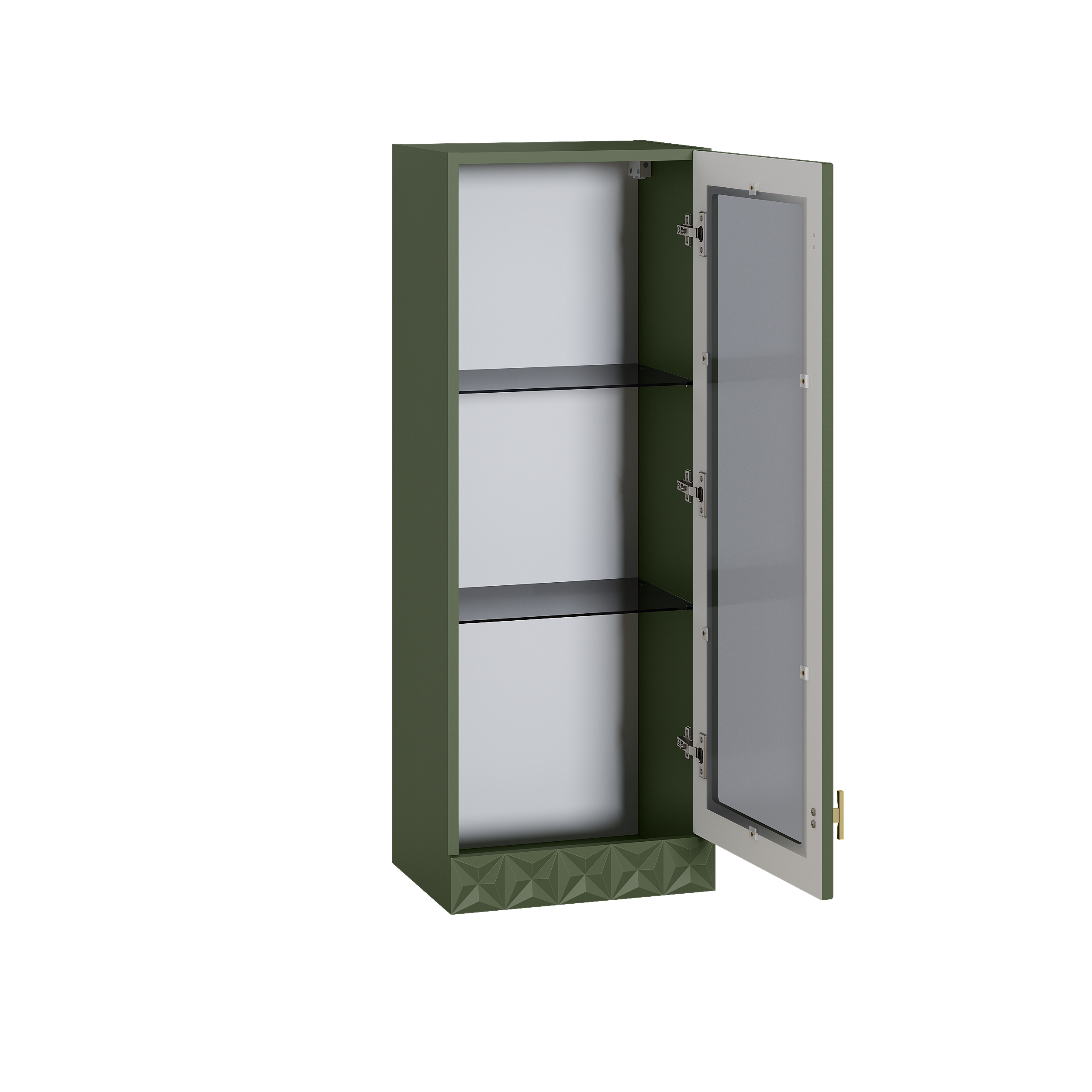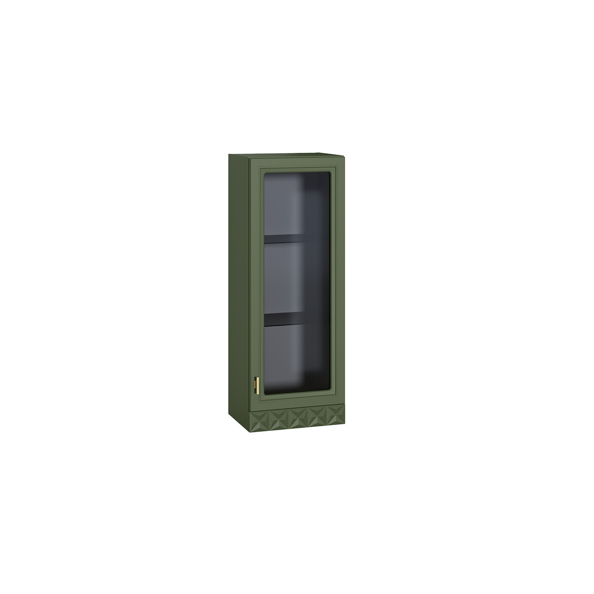Шкаф-витрина Марион 16.397.01 дымчатый зеленый K521, олива шагрень AG 1050 ПВХ (собирается на любую сторону)