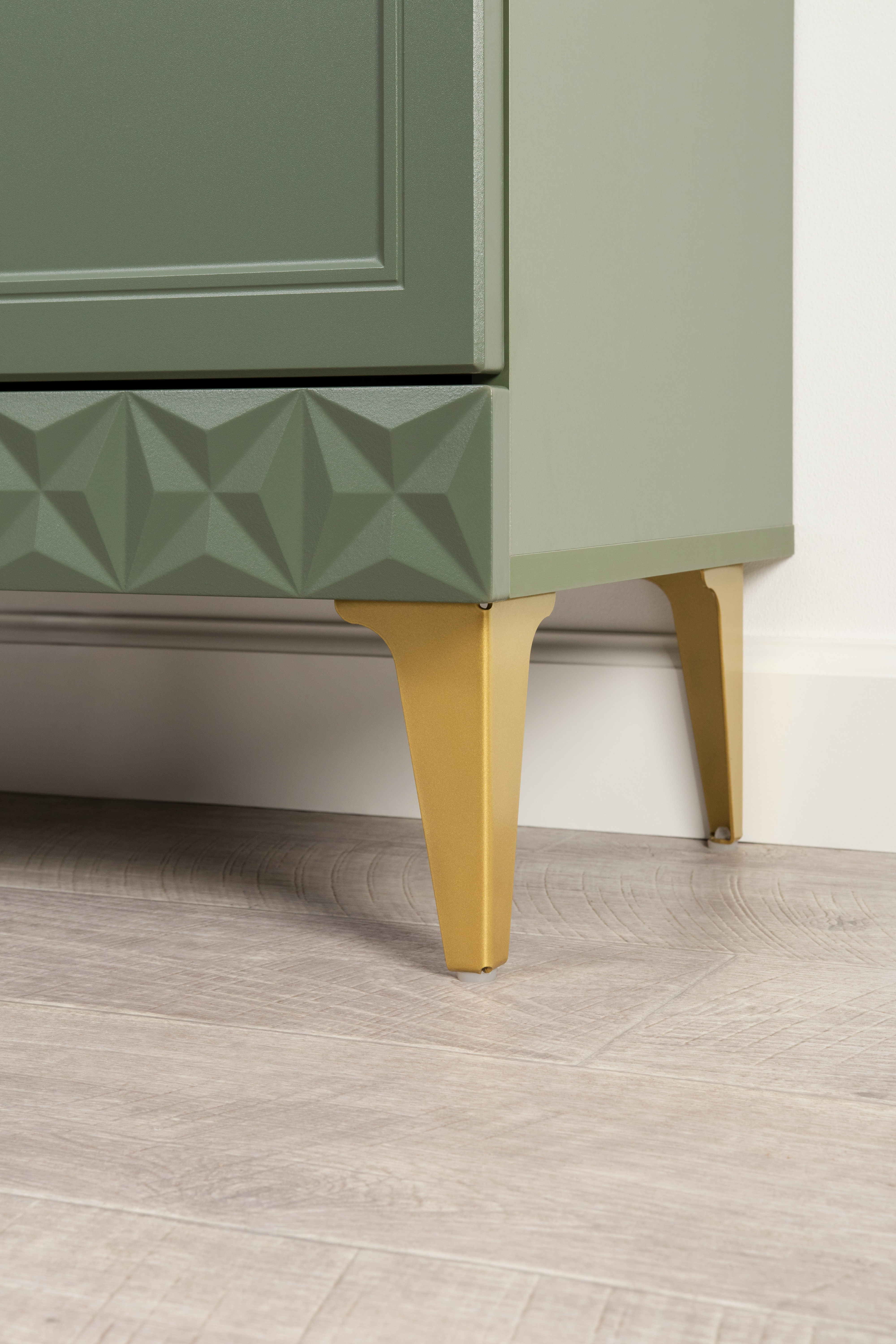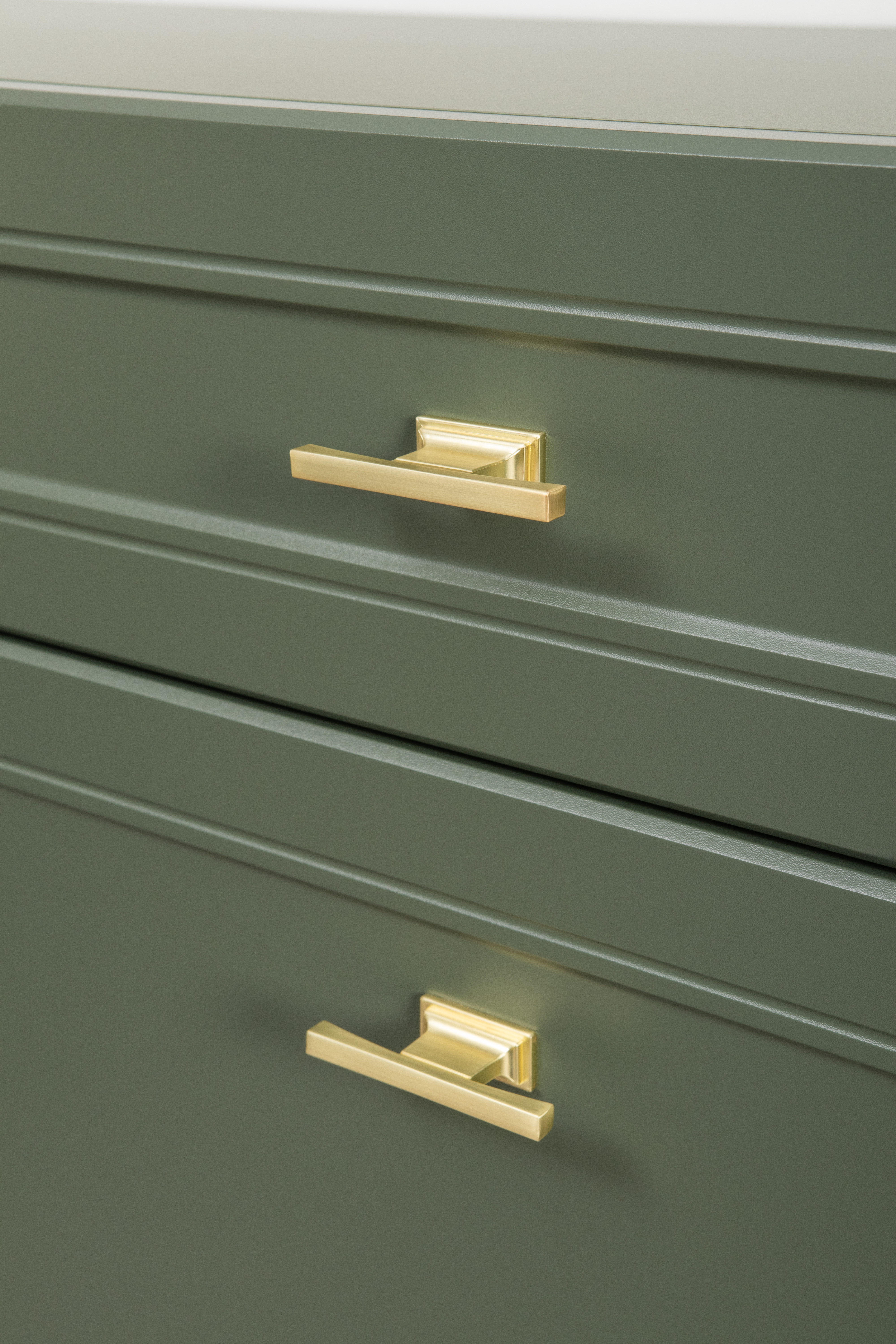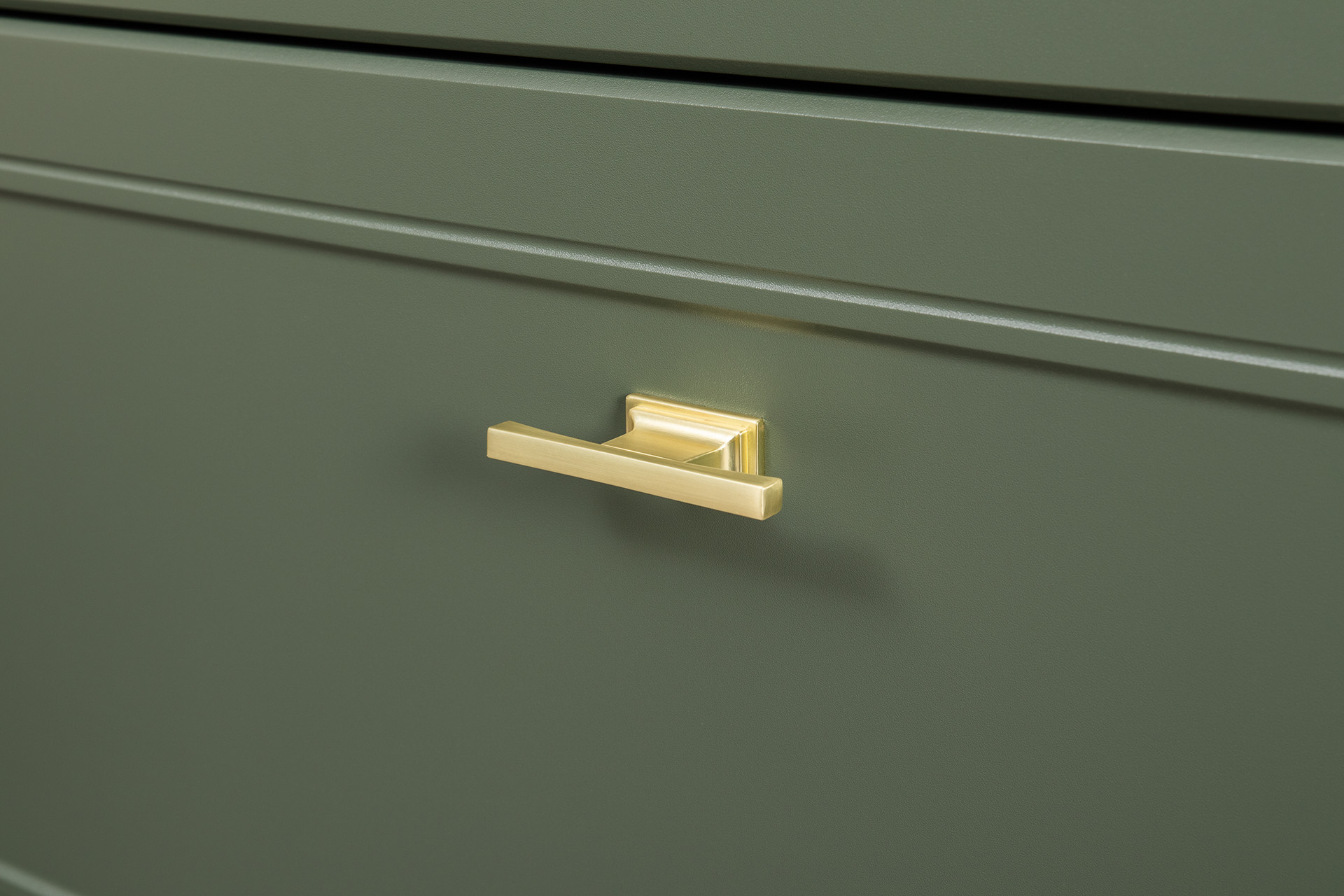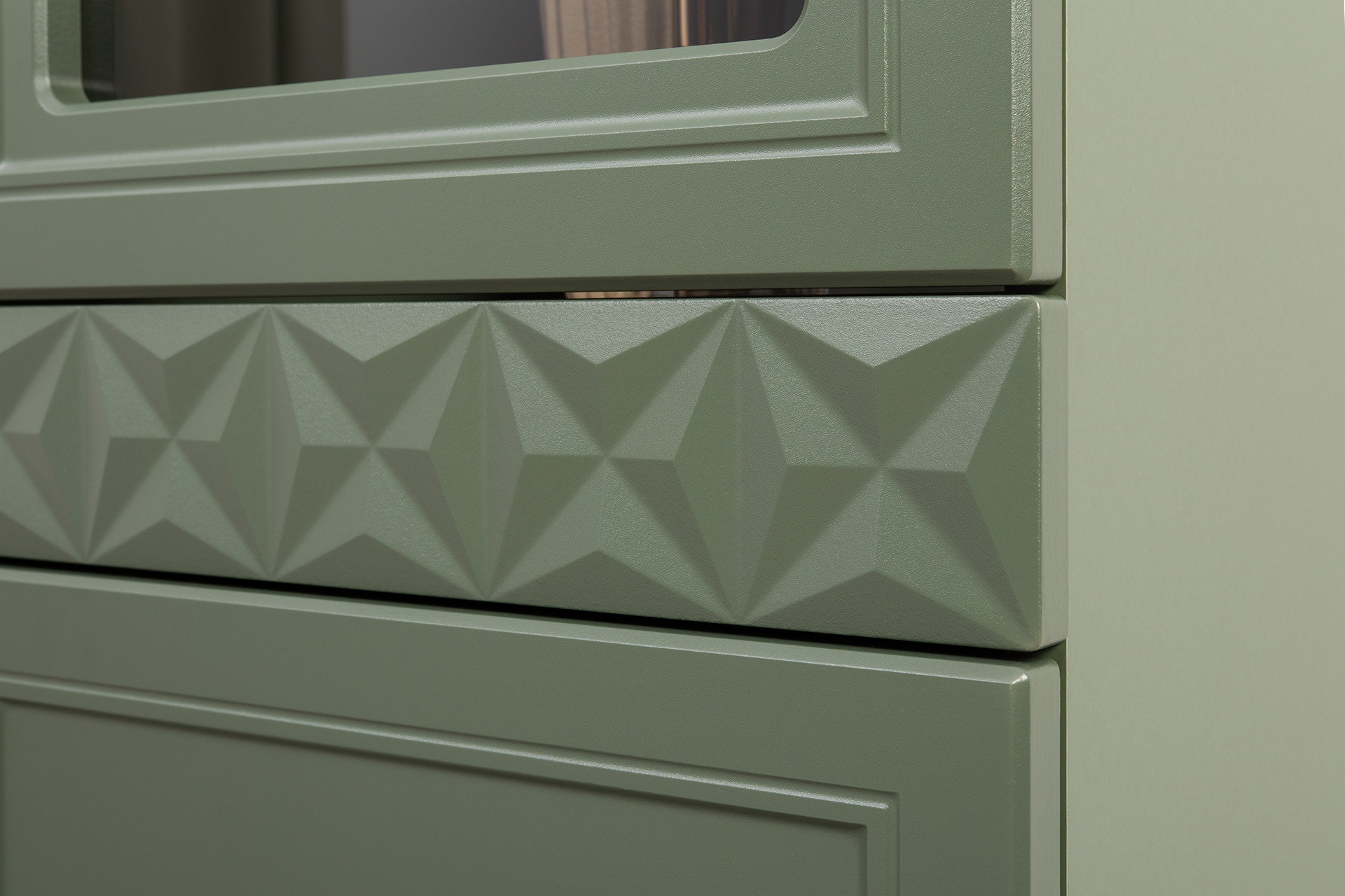 Комод Марион 16.249 дымчатый зеленый K521, олива шагрень AG 1050 ПВХ, белый PE шагрень