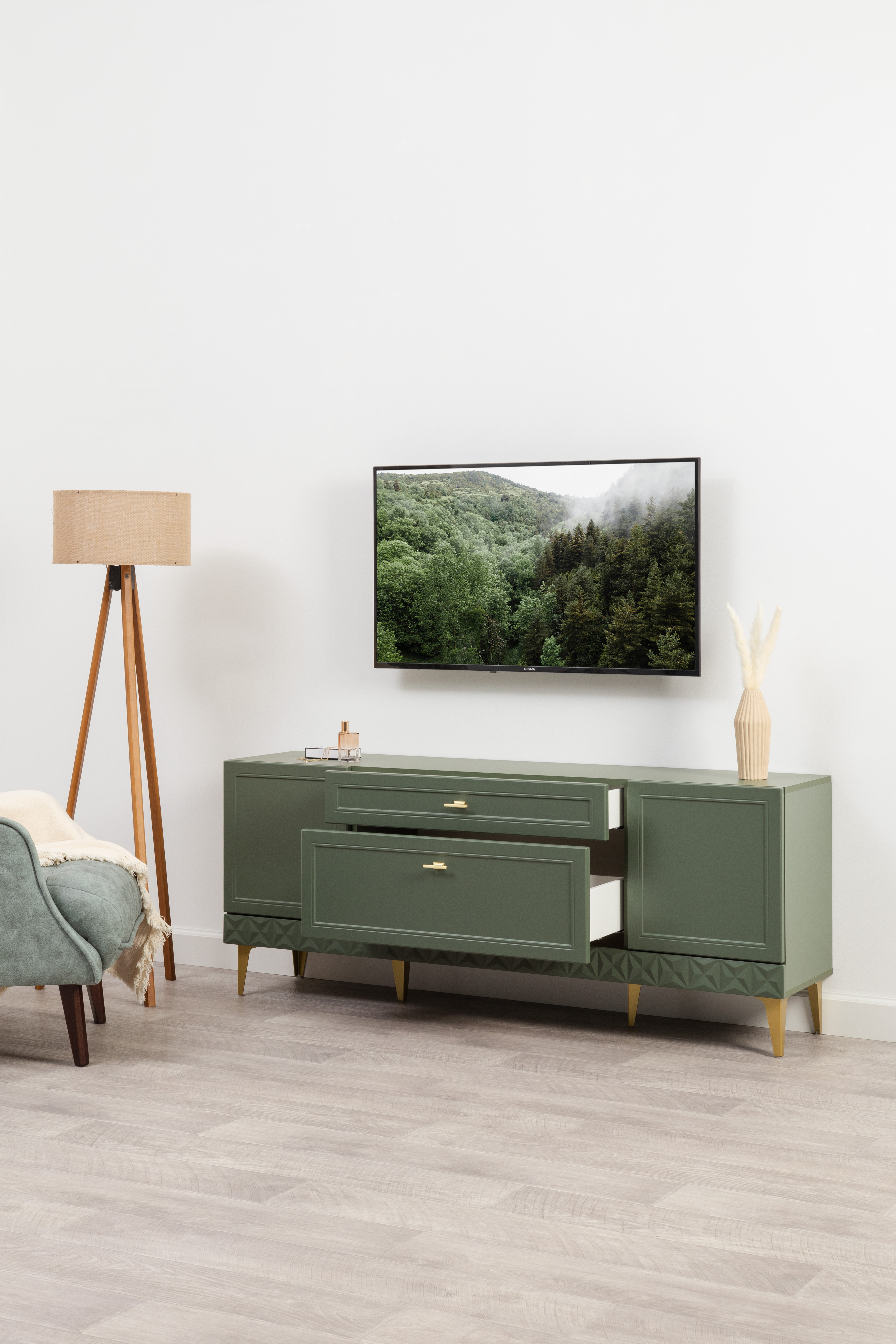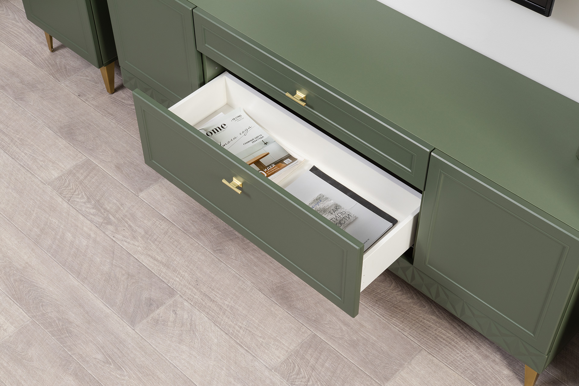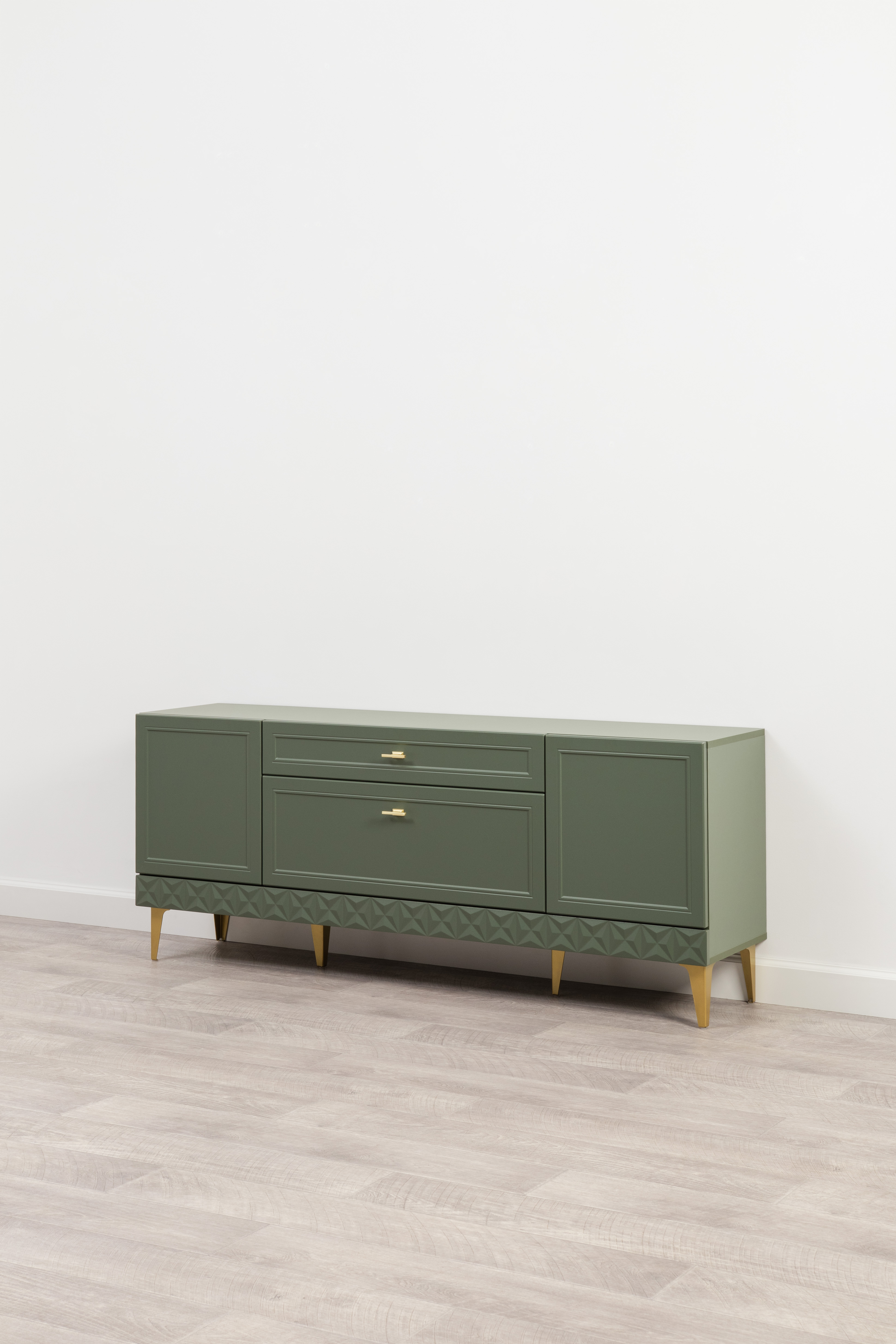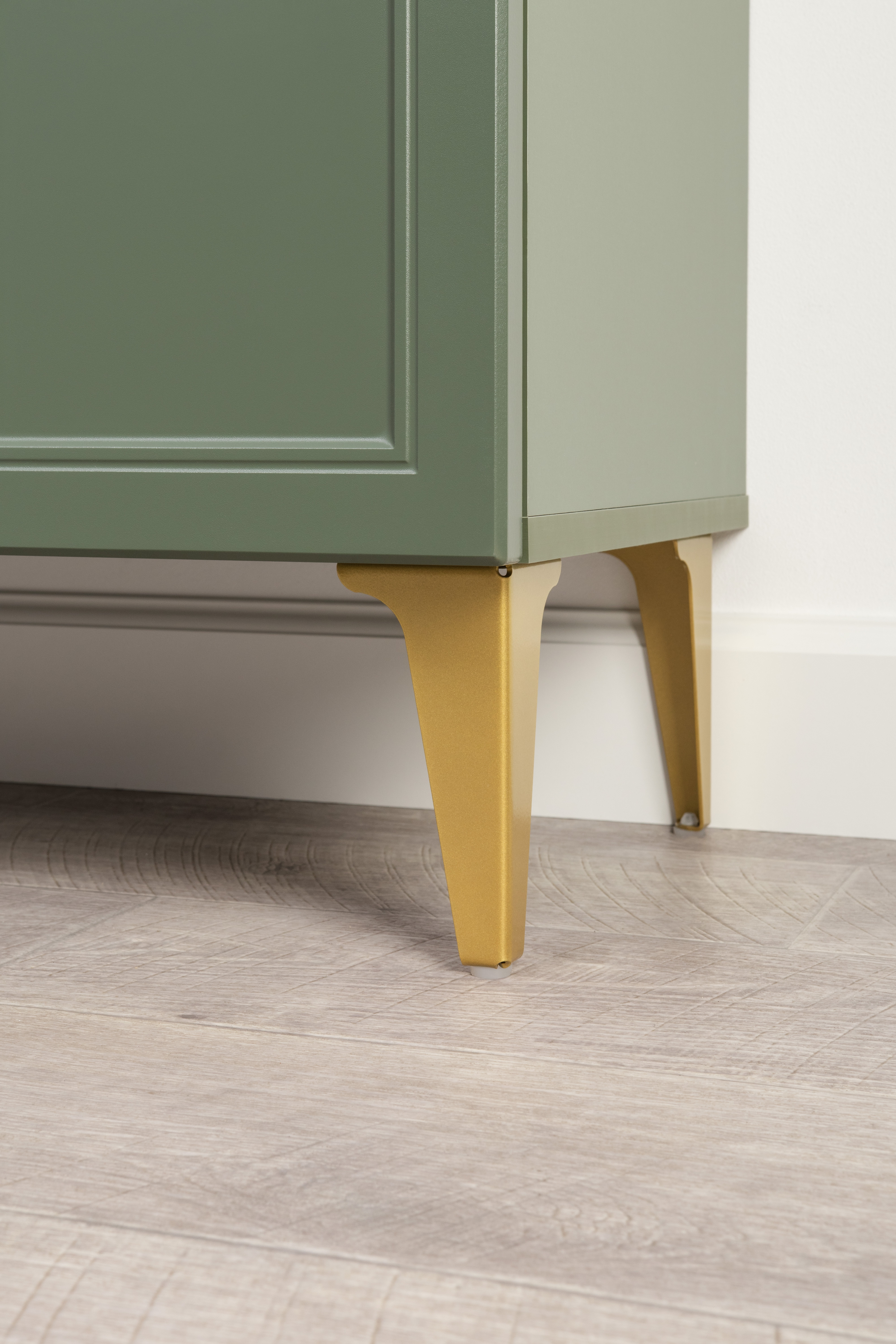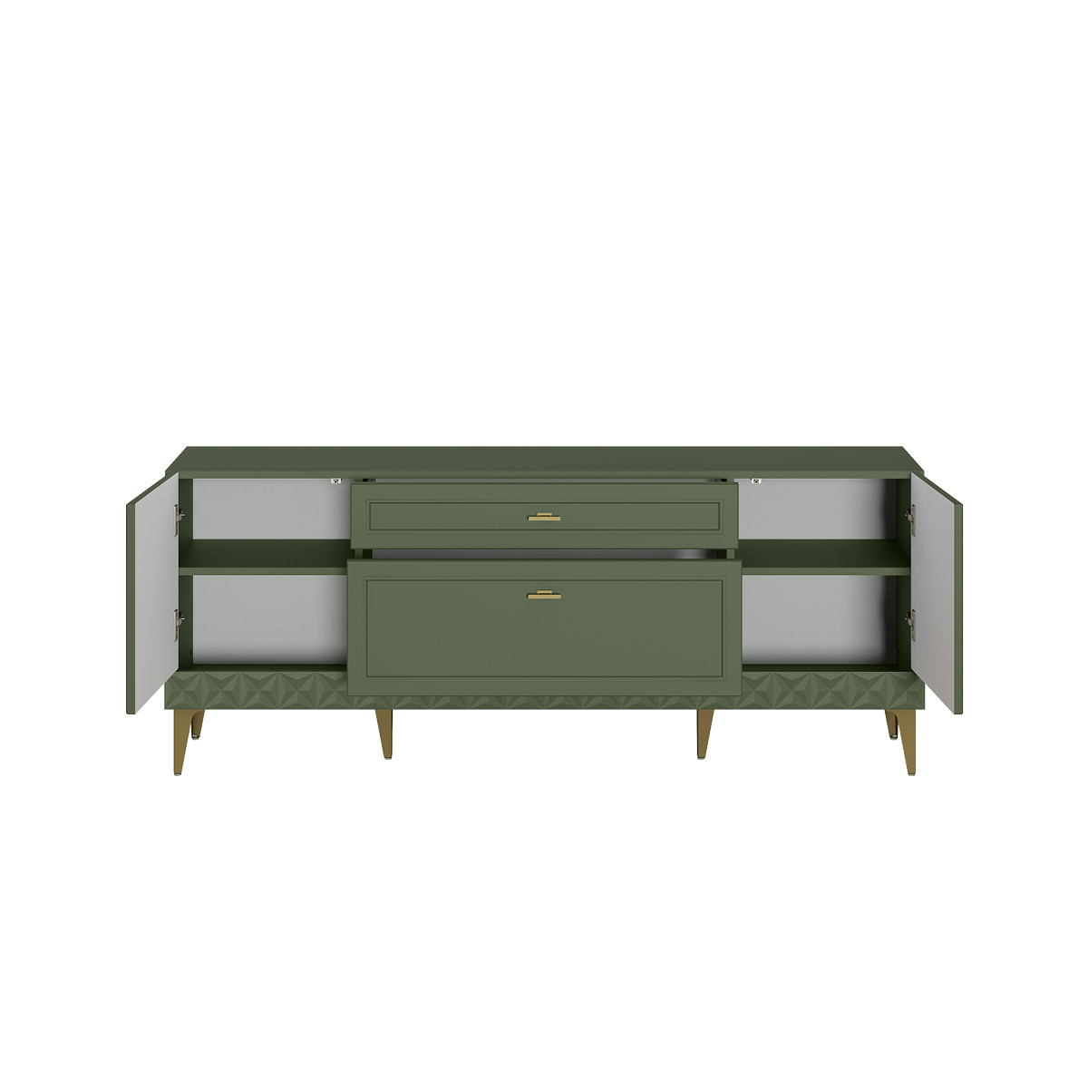 Комод Марион 16.249 дымчатый зеленый K521, олива шагрень AG 1050 ПВХ, белый PE шагрень