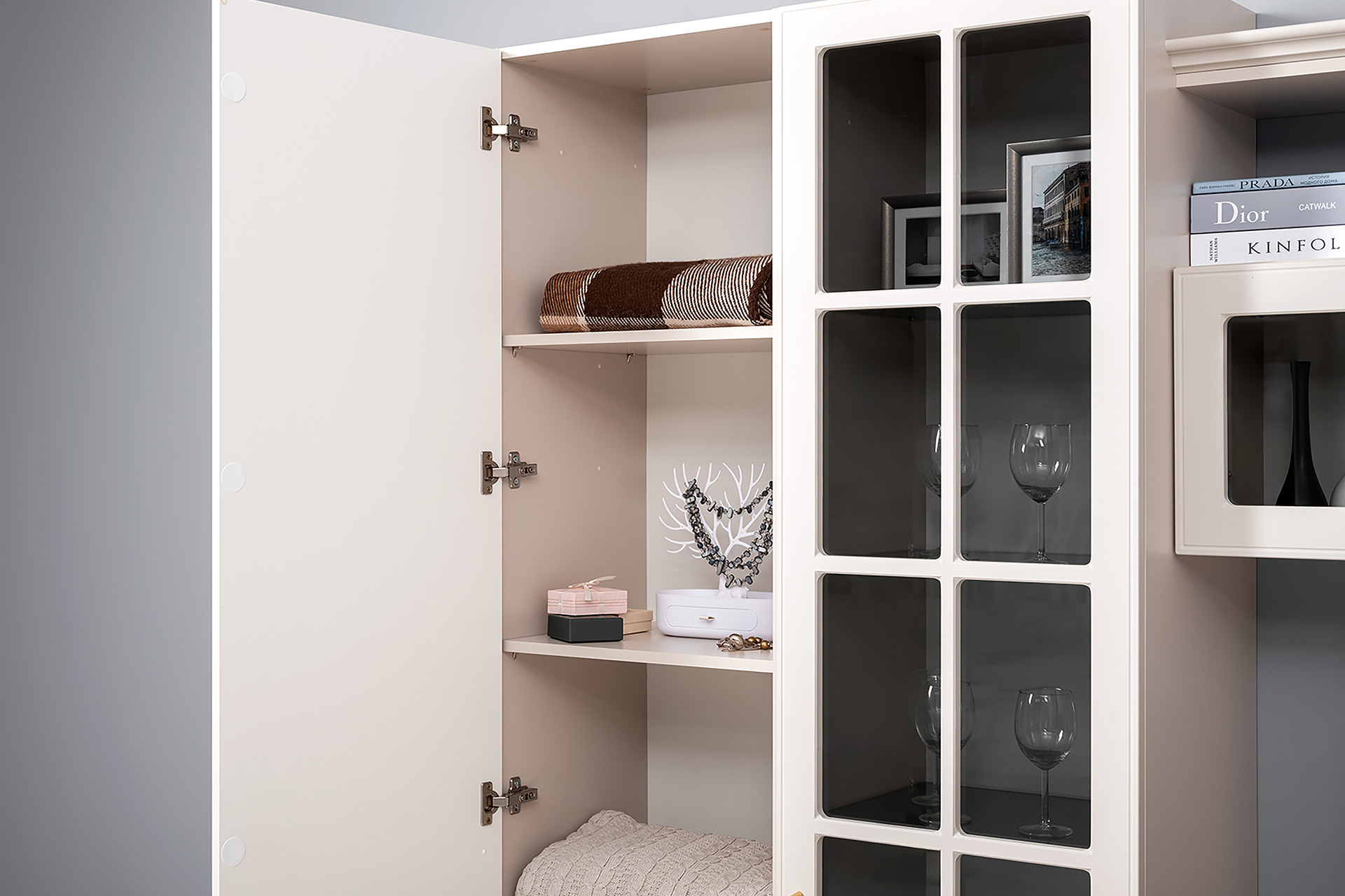 Шкаф-витрина Ричфорд 16.396 кашемир 5981 BS, моно керамика D166-2 ПВХ (собирается на любую сторону)
