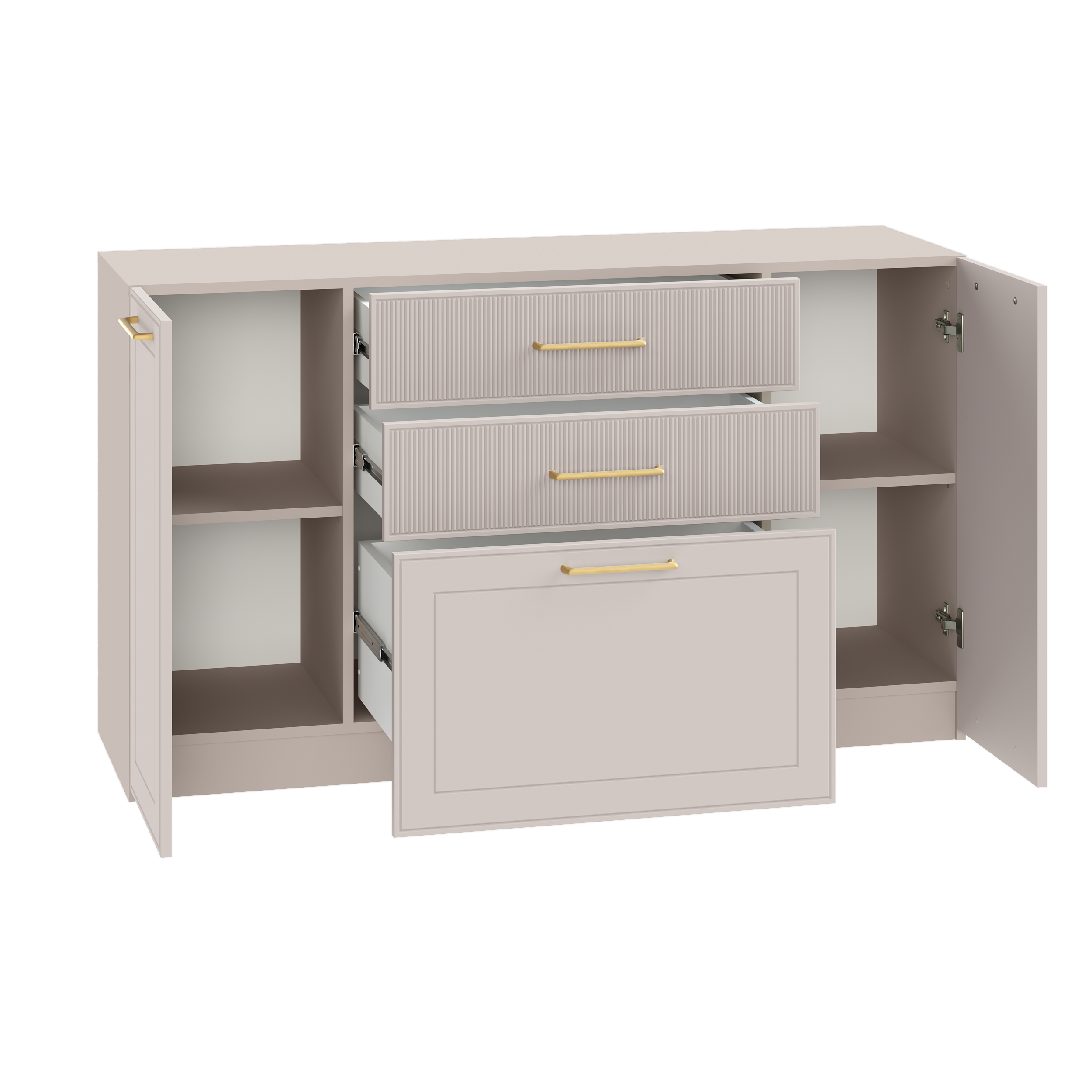 Гостиная Ричфорд композиция 2 без карнизов, кашемир 5981 BS, моно керамика D166-2 ПВХ, белый PE шагрень (собирается на любую сторону)