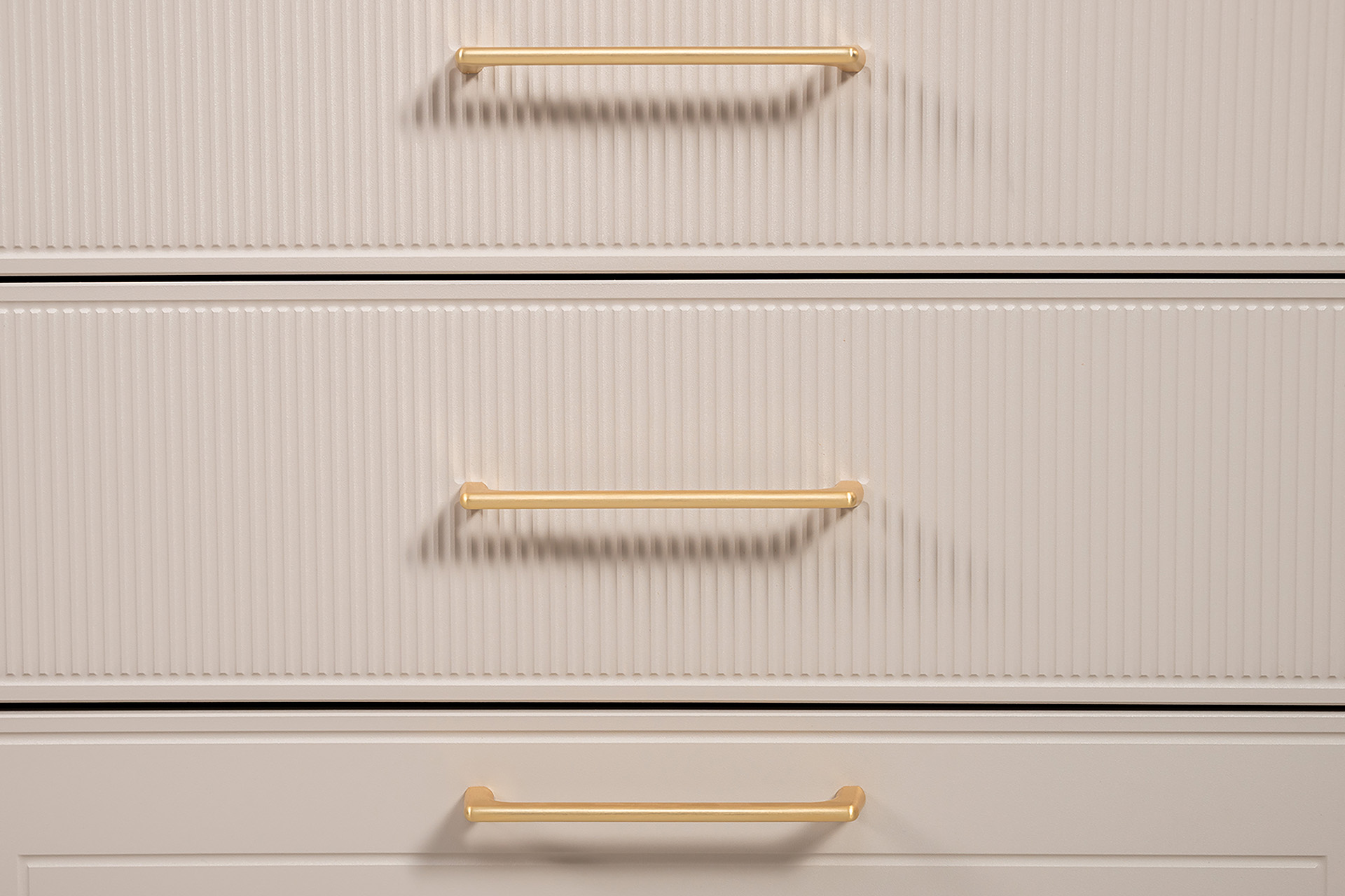 Петли с доводчиками, полное выдвижение ящиков, выдвижная штанга в шкафу для одежды и съемные полки делают использование максимально комфортным.