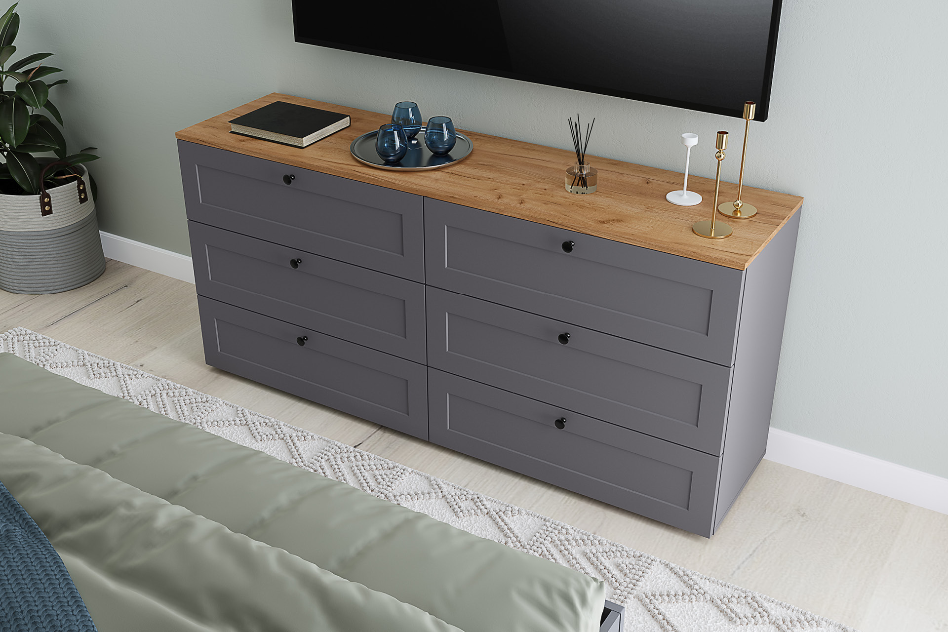 Комод Остин 16.240 серый графит, дуб золотой CRAFT, серый графит ПВХ
