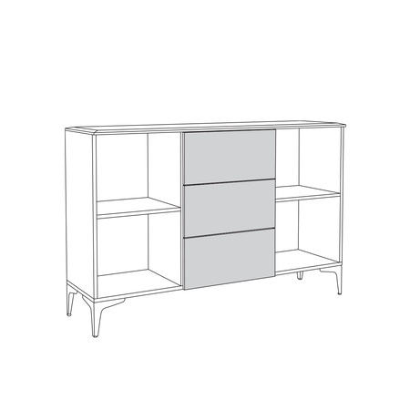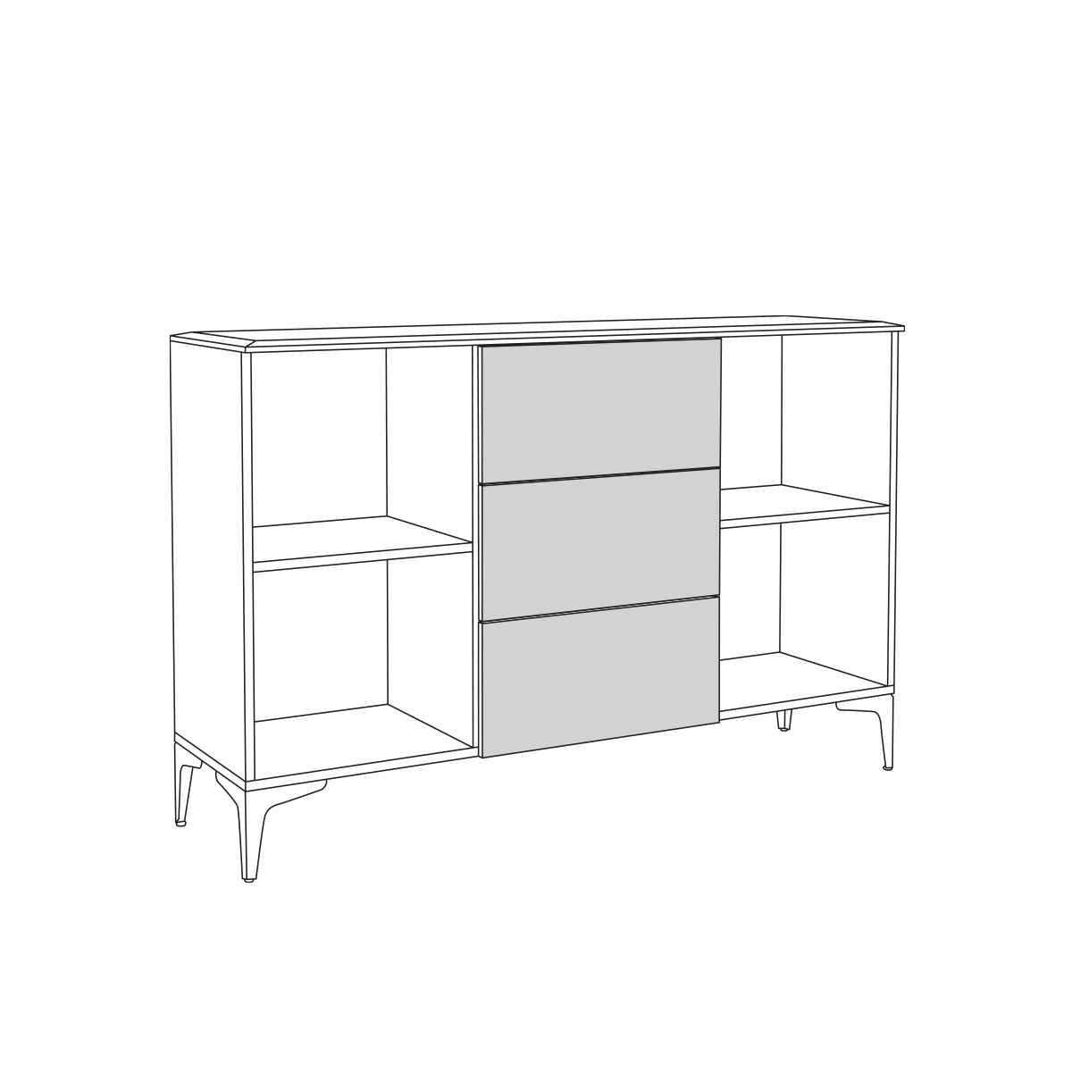Вся лицевая фурнитура металлическая, графичное и стильное сочетание черного и хромированных деталей эффектно расставляет акценты на мебели.
