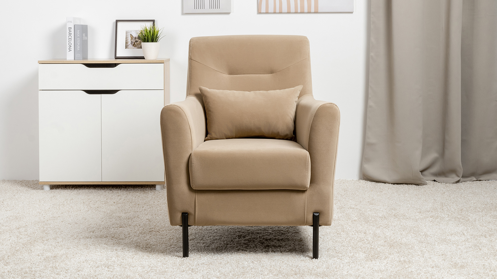 Компактное эргономичное кресло Барселона с легкостью дополнит любой интерьер. Для дополнительного комфорта в комплекте идёт декоративная думка, которая позволяет подстроить кресло под себя.