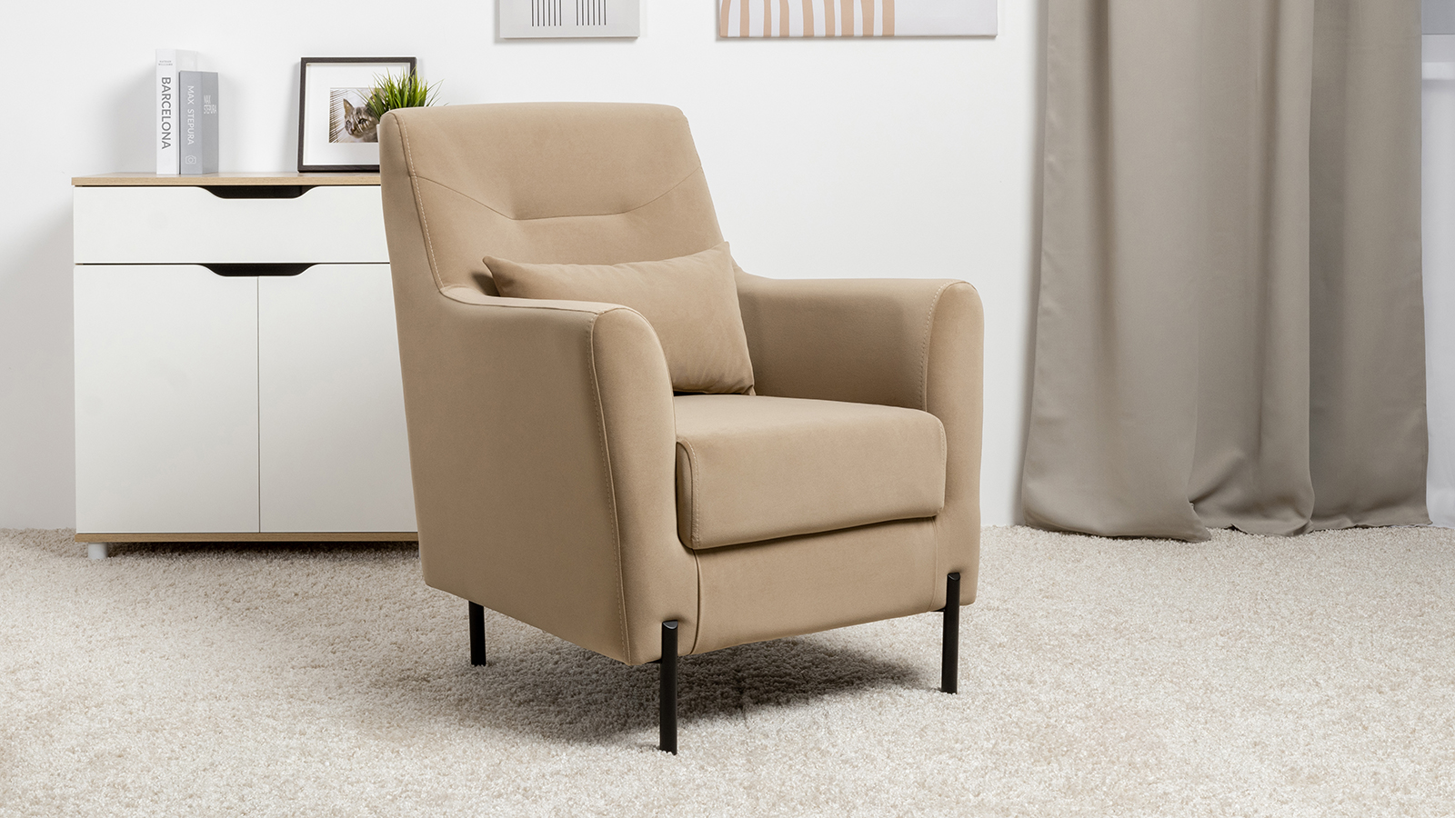Компактное и эргономическое кресло Барселона с легкостью дополнит любой интерьер. Для дополнительного комфорта в комплекте идёт декоративная думка, которая позволяет подстроить кресло под себя.