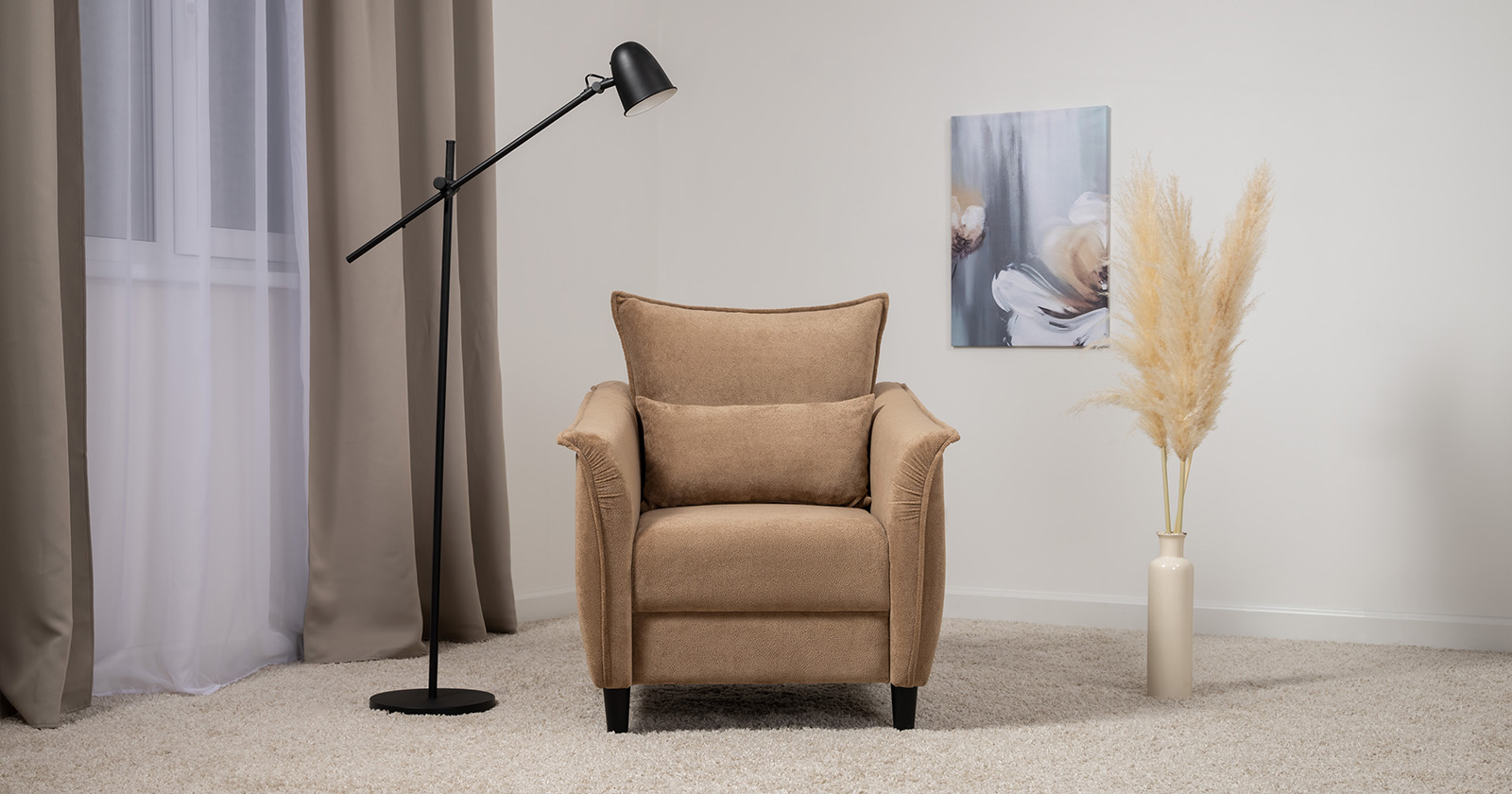 Изогнутые подлокотники в форме лепестков придают коллекции изысканный и элегантный вид, а дополнительные декоративные подушки обеспечат поддержку поясницы и помогут уютно устроиться на кресле.