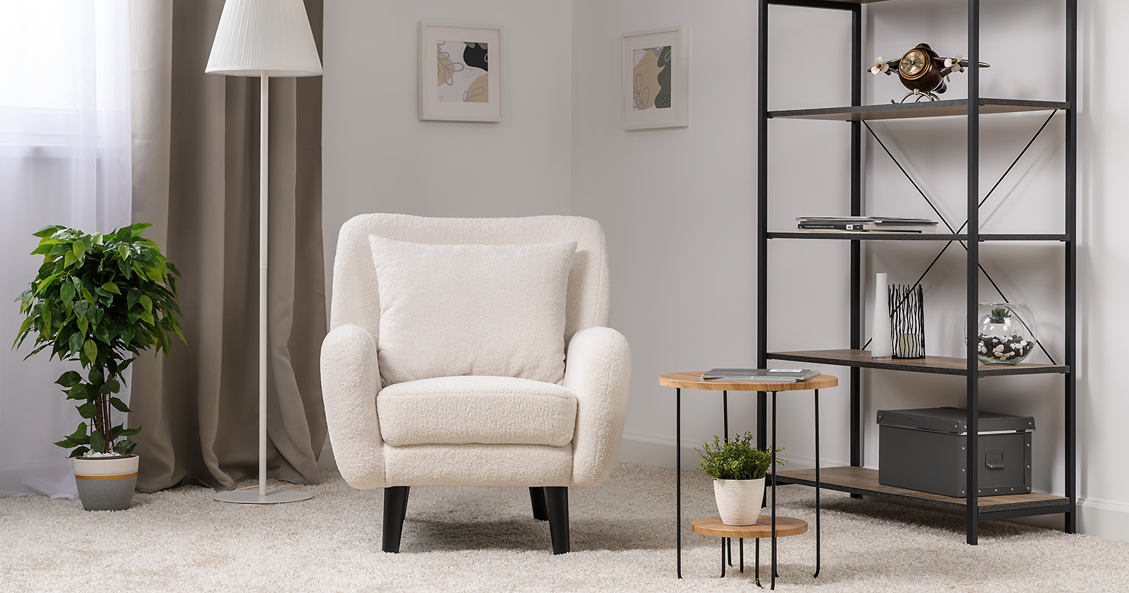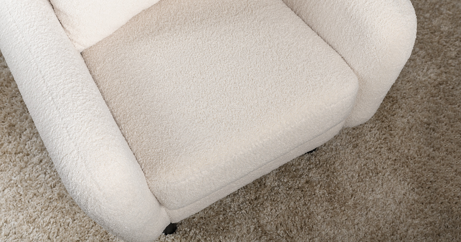 Ткань букле делает кресло особенно уютным и мягким. Приспинная подушка в цвете кресла