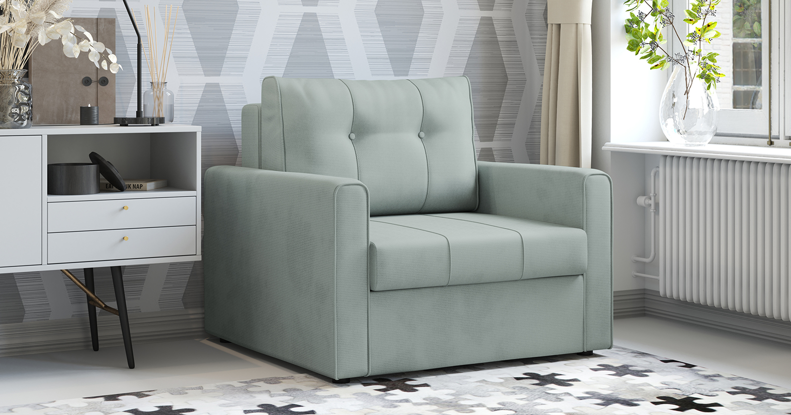 Кресло-кровать «Лео» – компактное современное решение для гостиных, квартир-студий, детских и подростковых комнат. Ровное и комфортное спальное место для взрослого, подростка или ребенка.