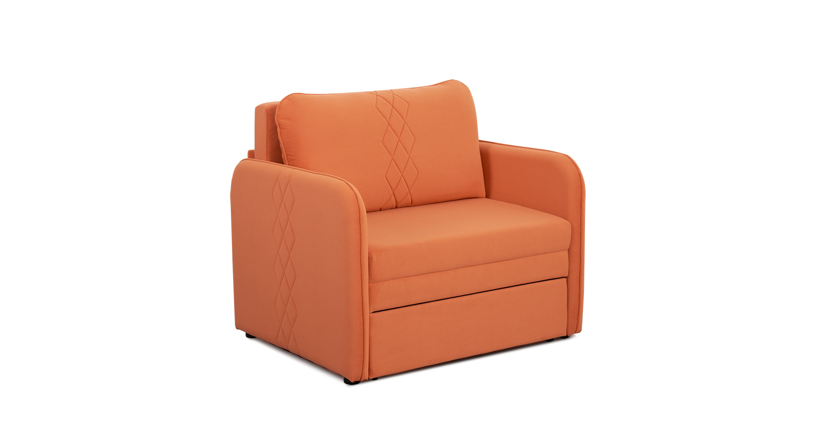 Стильный компактный диван для детской и гостиной. При своих скромных размерах он трансформируется в полноценное спальное место для детей и подростков. Лаконичный дизайн в виде декоративной стежки подчеркивает фактуру велюра, а небольшие размеры позволят разместить его в любом пространстве.