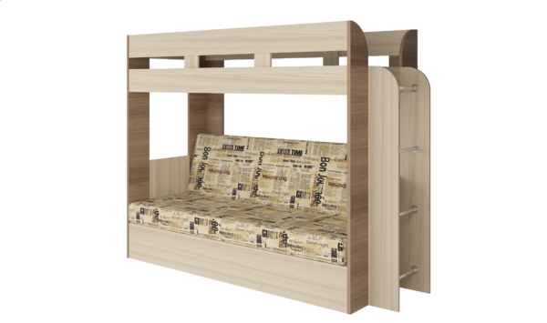 Диван раскладывается, сборка у кровати универсальная: Вы можете установить лестницу как справа, так и слева.