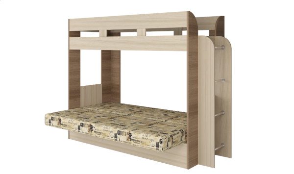 Двухъярусная кровать с диваном на первом уровне очень функциональна, удобно разместится в любом интерьере.