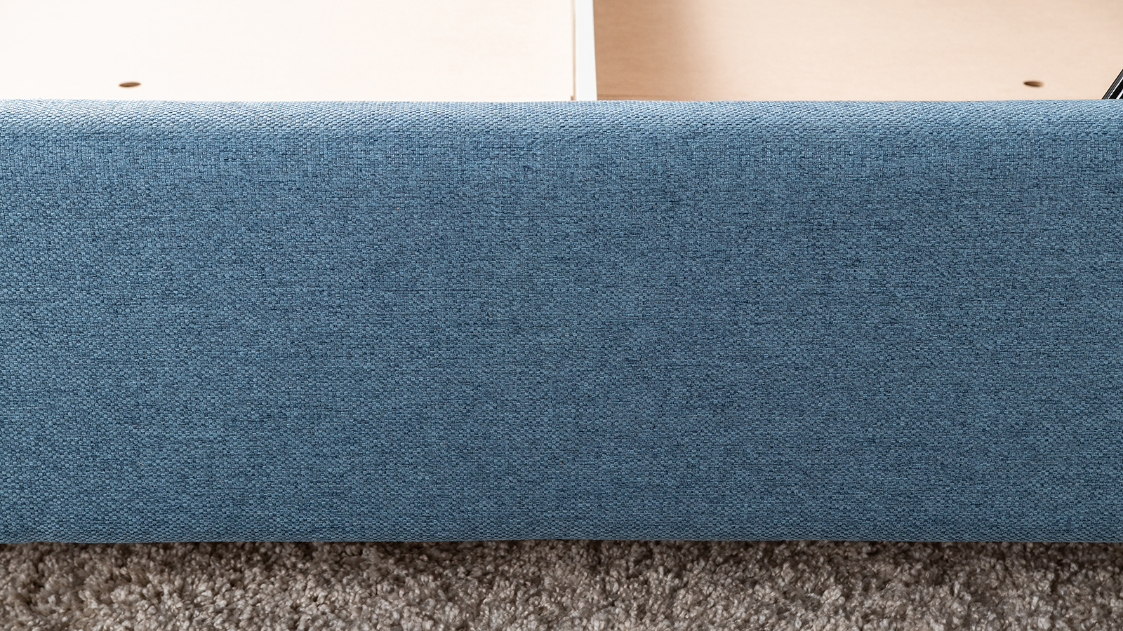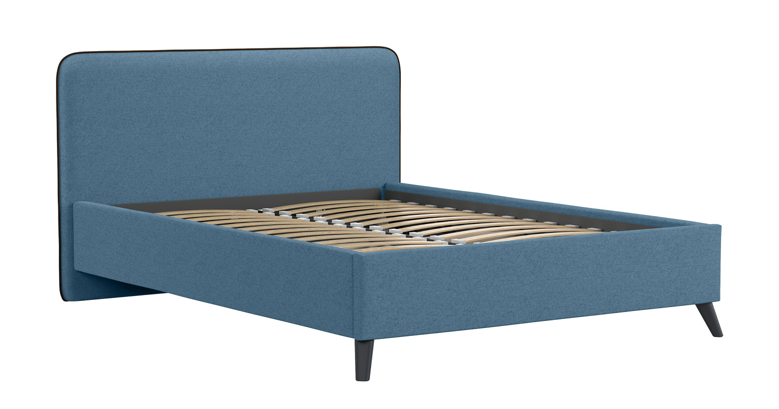 Cкругленный торец изголовья оформлен контрастным кантом.