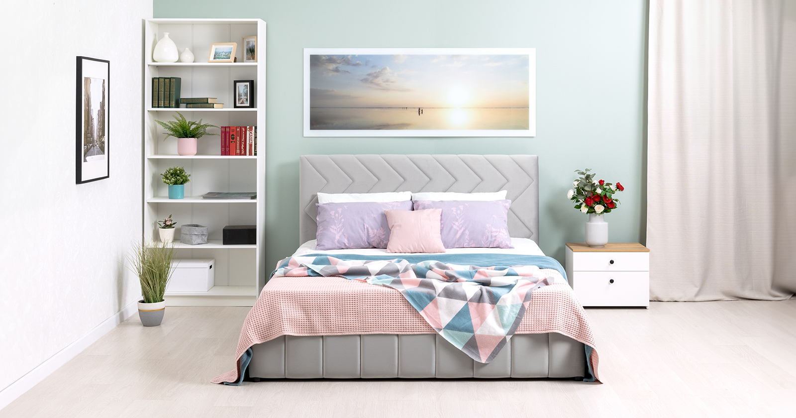 Основание кровати укомплектовано матрасодержателями. Жесткое кроватное дно из ЛДСП 16 мм. Задняя стенка изголовья выполнена в тех. ткани (спанбонд).