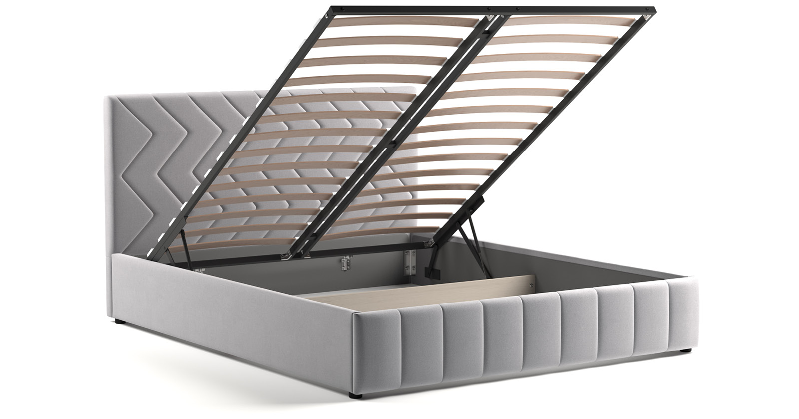 Кровать Милана 160 велюр светло-серый с ортопедическим основанием и подъемным механизмом