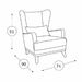 Высокая спинка с наклоном и мягкие подлокотники обеспечивают удобную посадку, дополнительный комфорт создает декоративная подушка. Царга кресла обтянута искусственной кожей в цвет опорам.