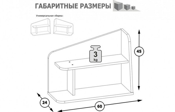 Полка навесная Сидней 15.57 белый премиум, черный (универсальная сборка)