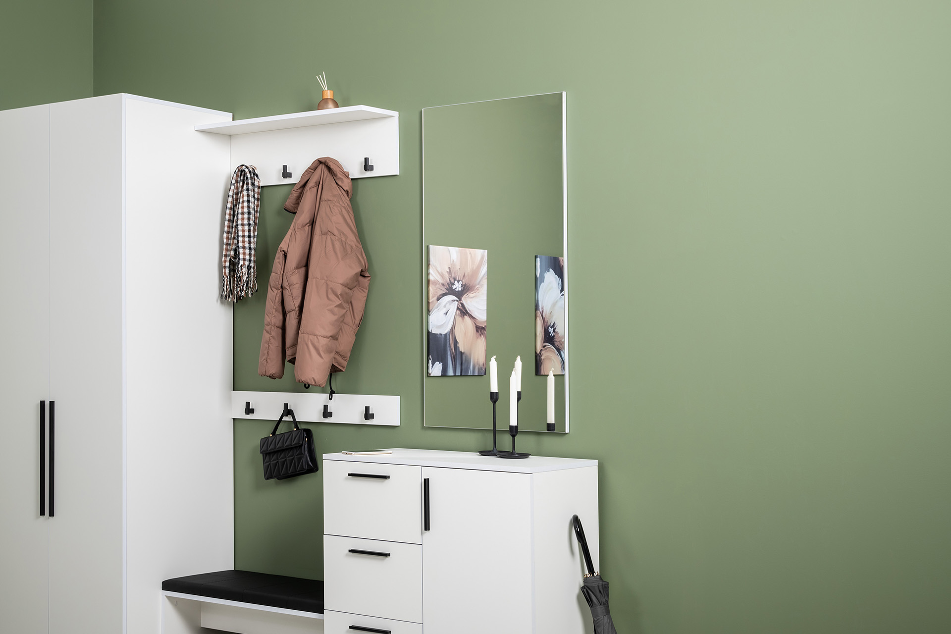 Нейтральный белый цвет визуально расширит ограниченное пространство прихожей.