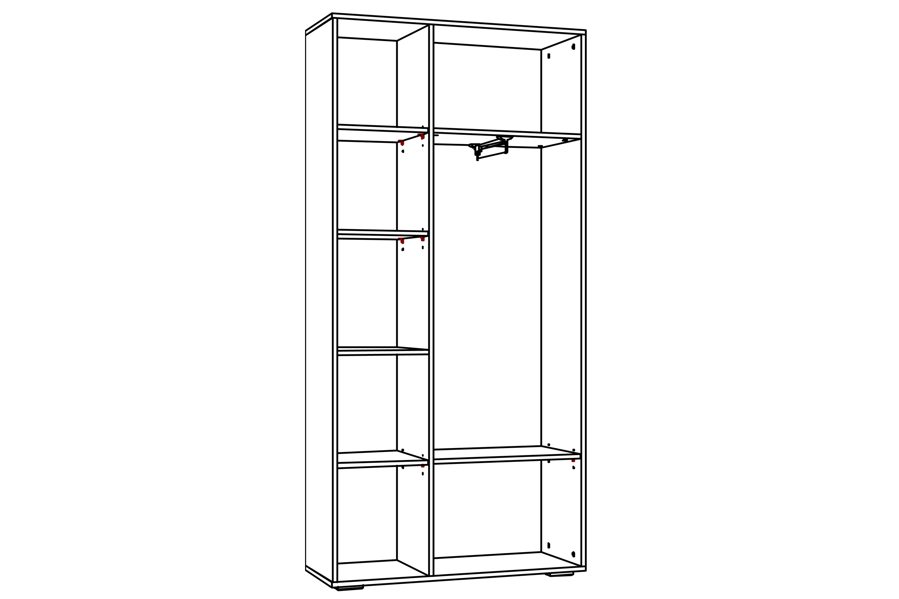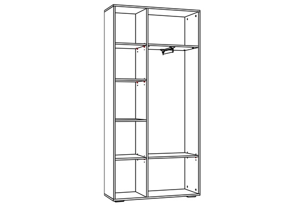 Шкаф для одежды Livorno НМ 013.36 поможет систематизировать хранение одежды в спальне или прихожей. Отдел с выдвижной штангой и двумя полками предназначен для хранения одежды на вешалках-плечиках, а также коробок с обувью. В левой части модуля расположена секция с полками, содержимое которых надежно защитят от попадания грязи и пыли глухие фасады. Наличие двух створок позволит разместить сезонную и повседневную одежду в разных частях данного отдела. Во время поисков понадобится открыть только ту дверцу, за которой находится нужная в данный момент вещь, что предотвратит путаницу. Модуль выпускается полностью с глухими фасадами или оснащается зеркалом (по выбору клиента).