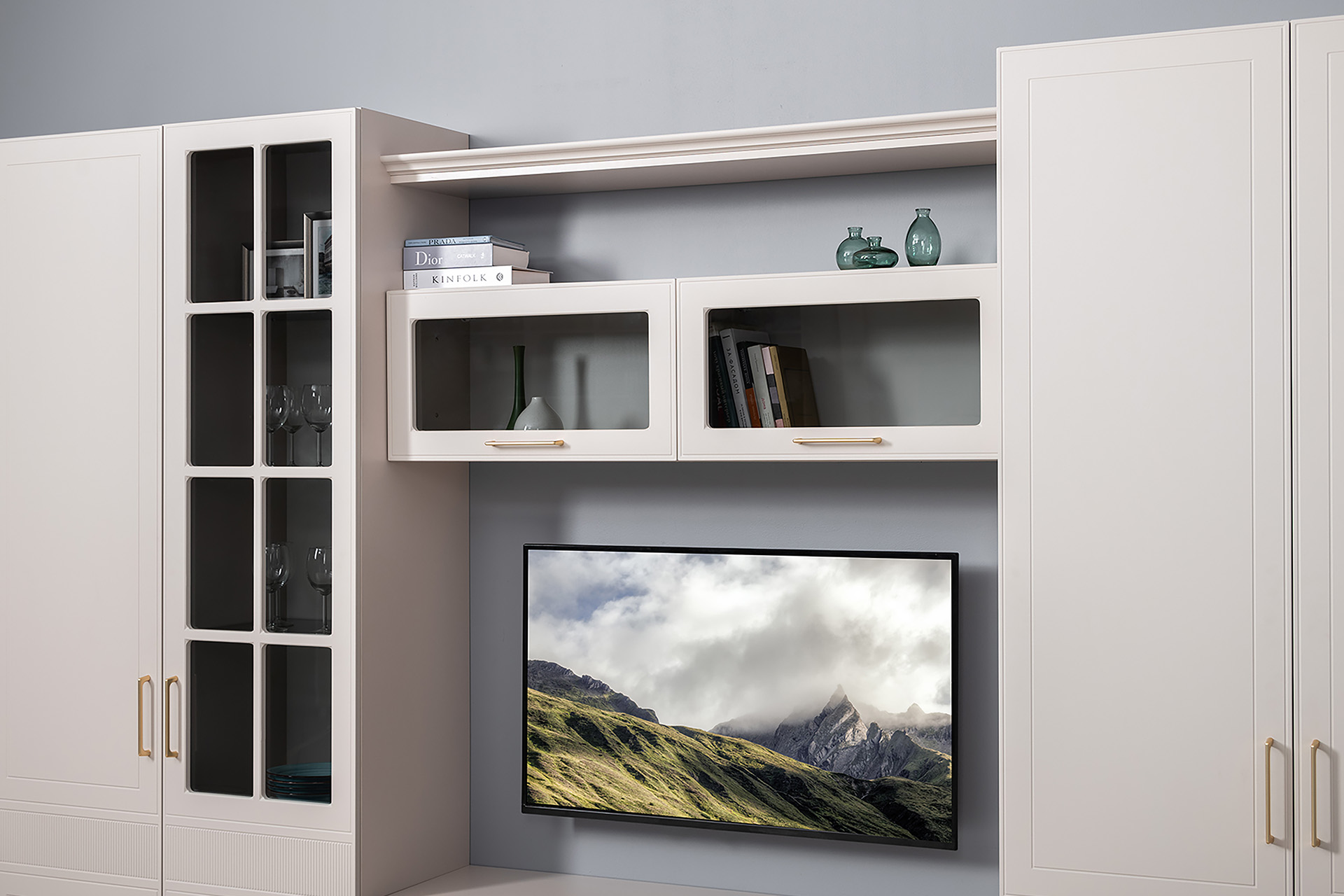 Тумба под ТВ Ричфорд 16.61 кашемир 5981 BS, моно керамика D166-2 ПВХ, белый PE шагрень