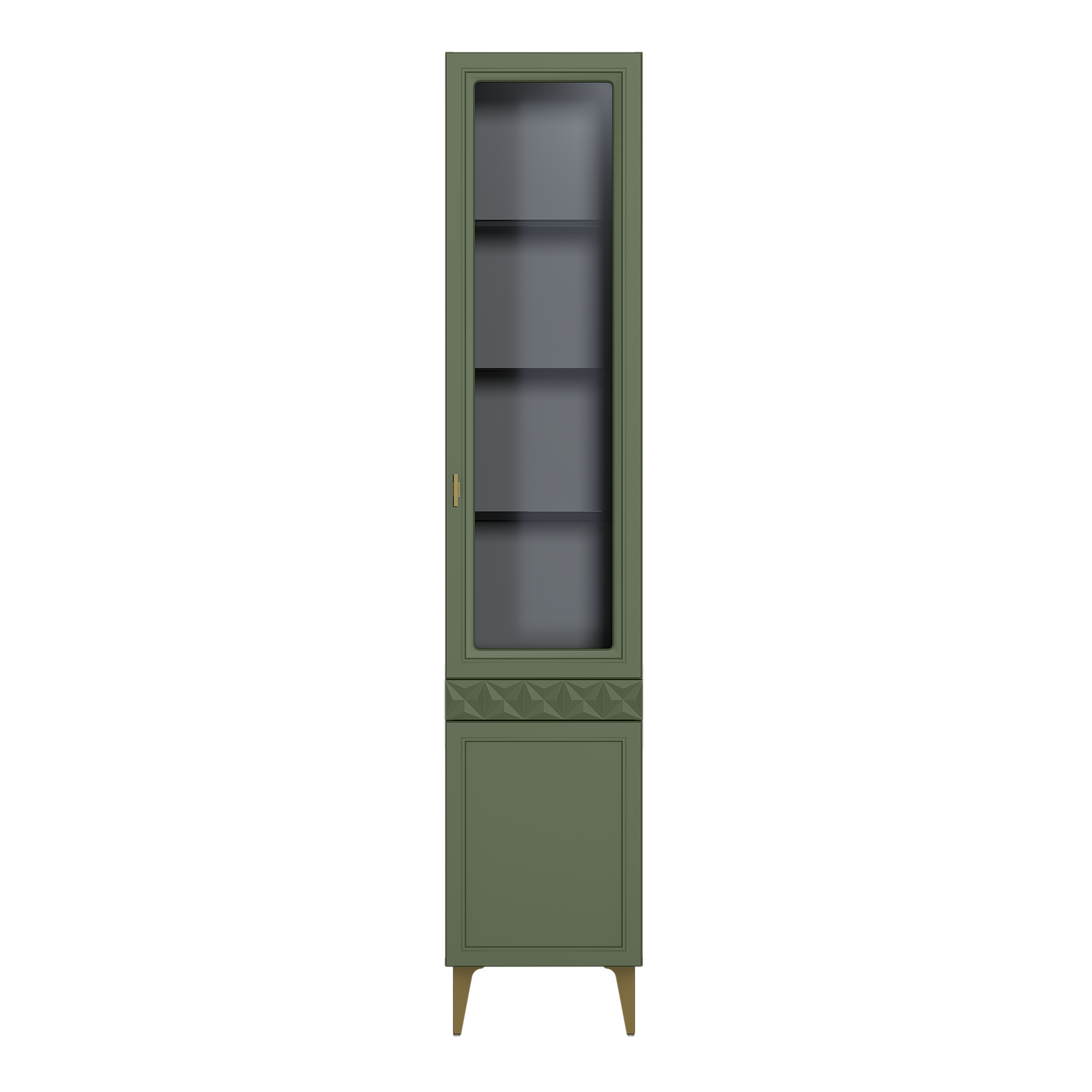 Шкаф-витрина Марион 16.397.01 дымчатый зеленый K521, олива шагрень AG 1050 ПВХ (собирается на любую сторону)