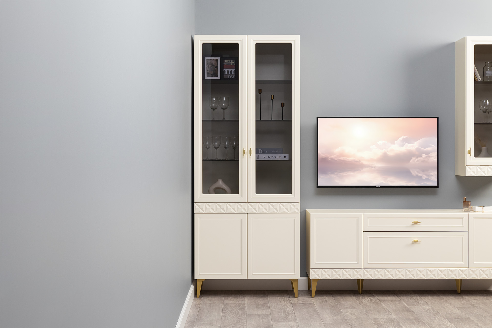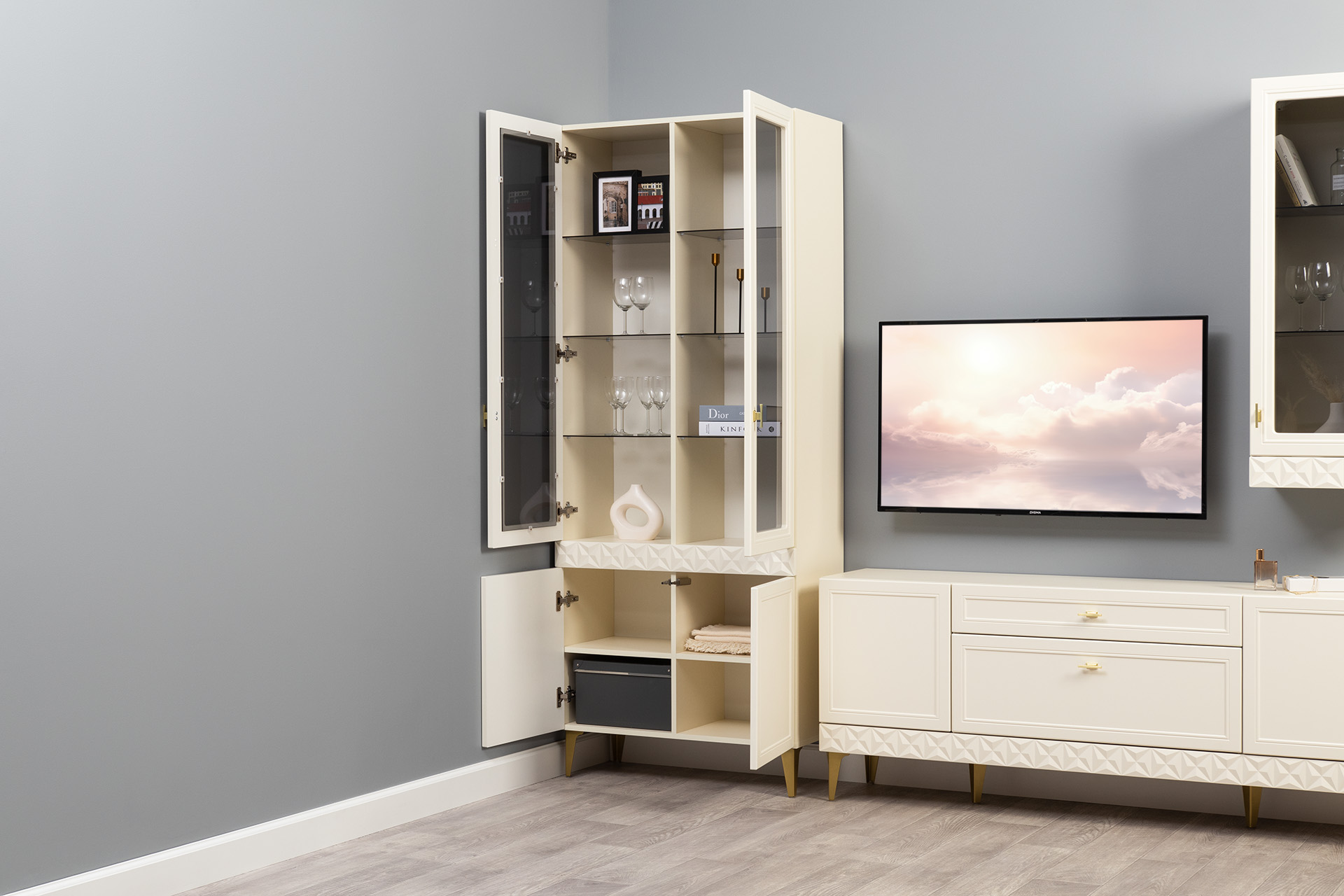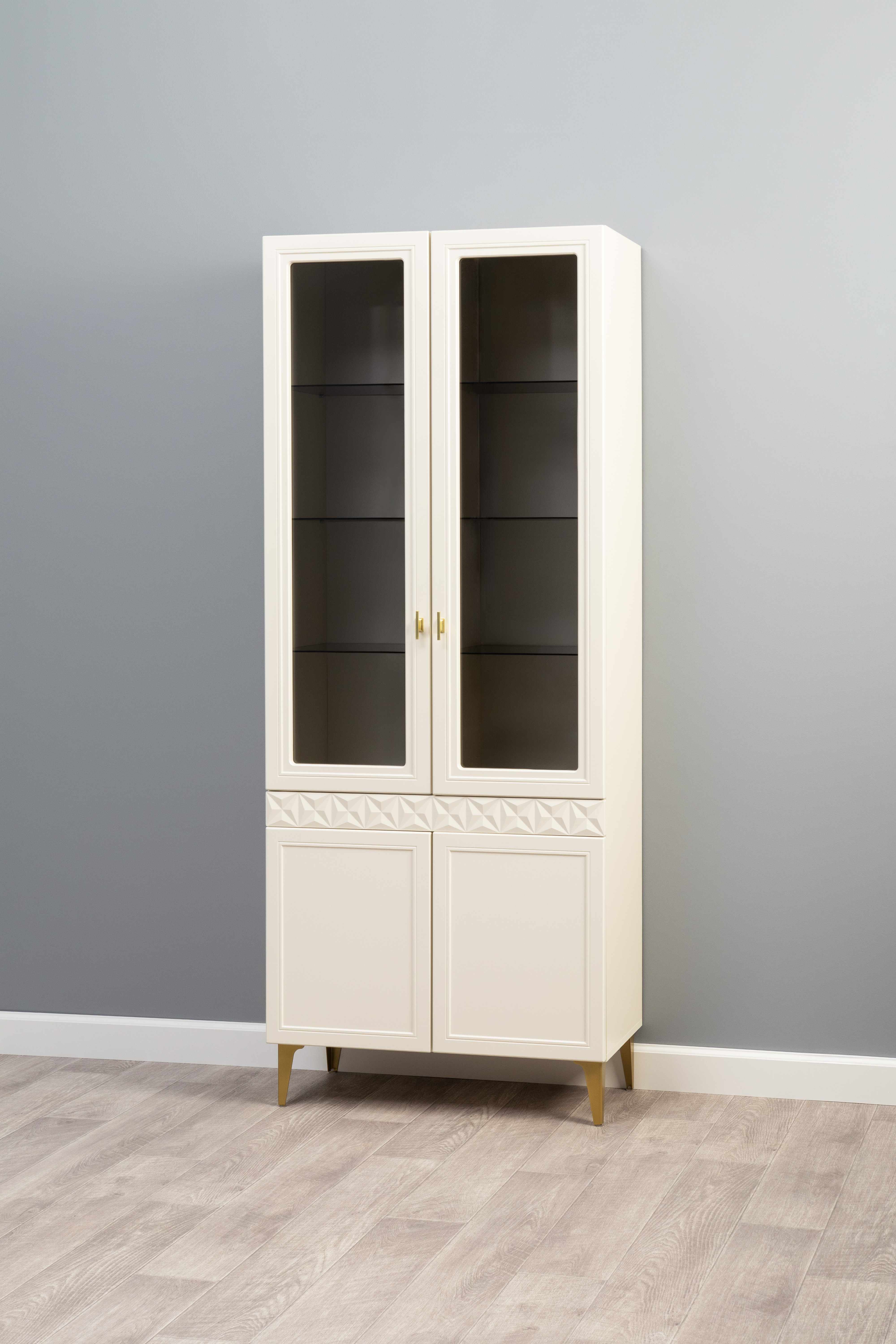 Шкаф-витрина Марион 16.397.02 слоновая кость С341 PE, слоновая кость 6898 ПВХ