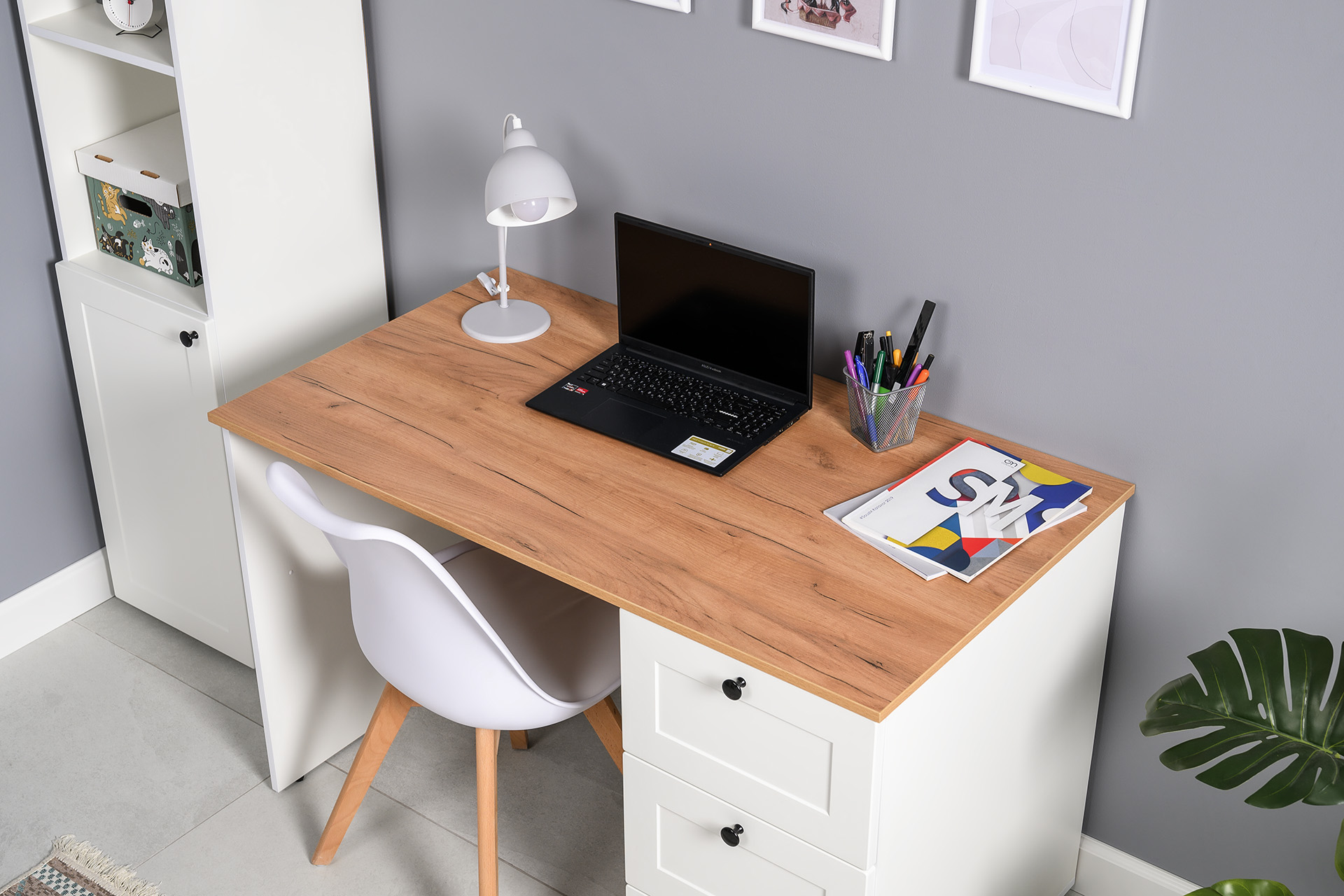 Стол письменный Лайт 03.243 Н дуб золотой CRAFT, белый премиум