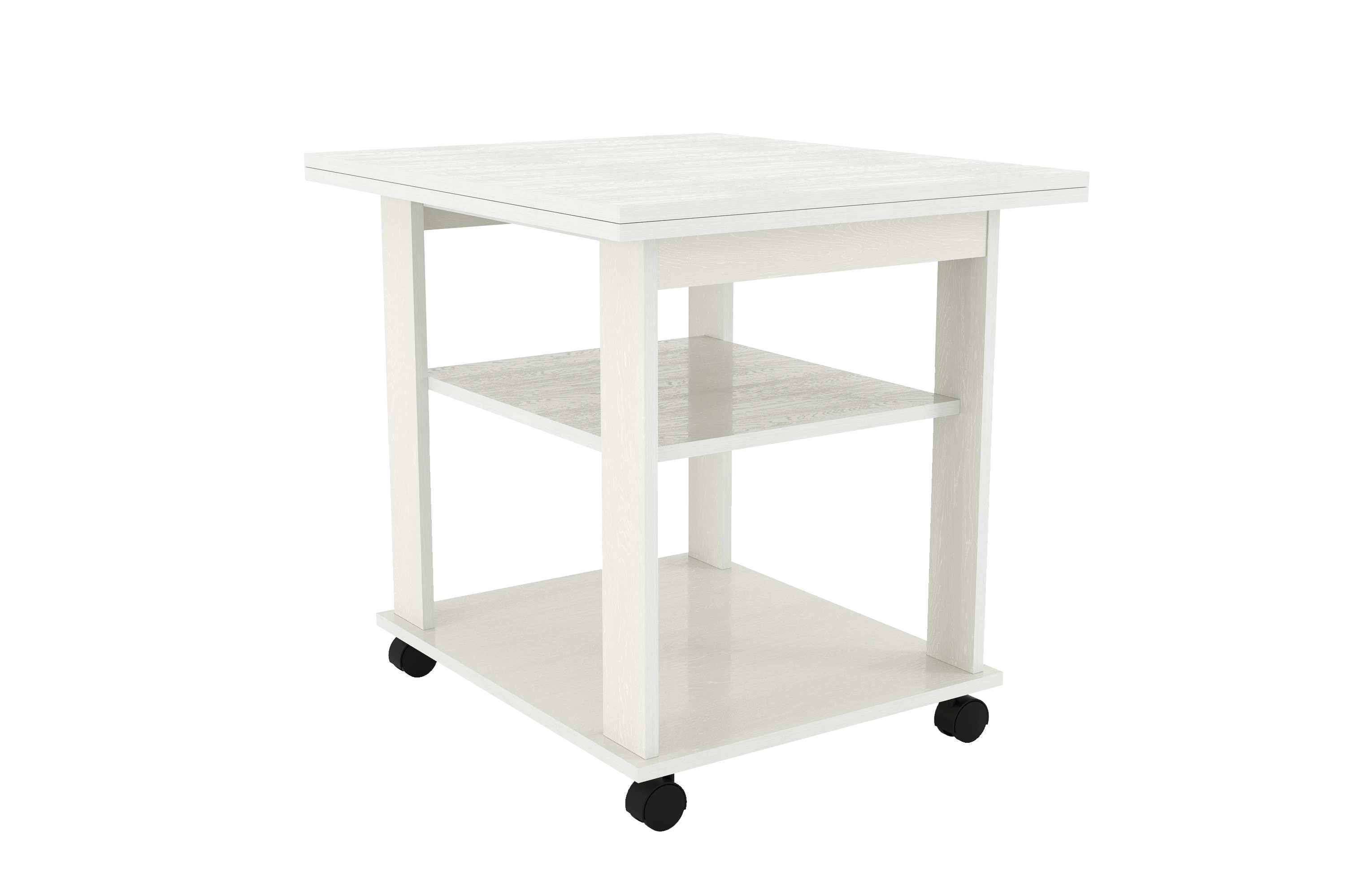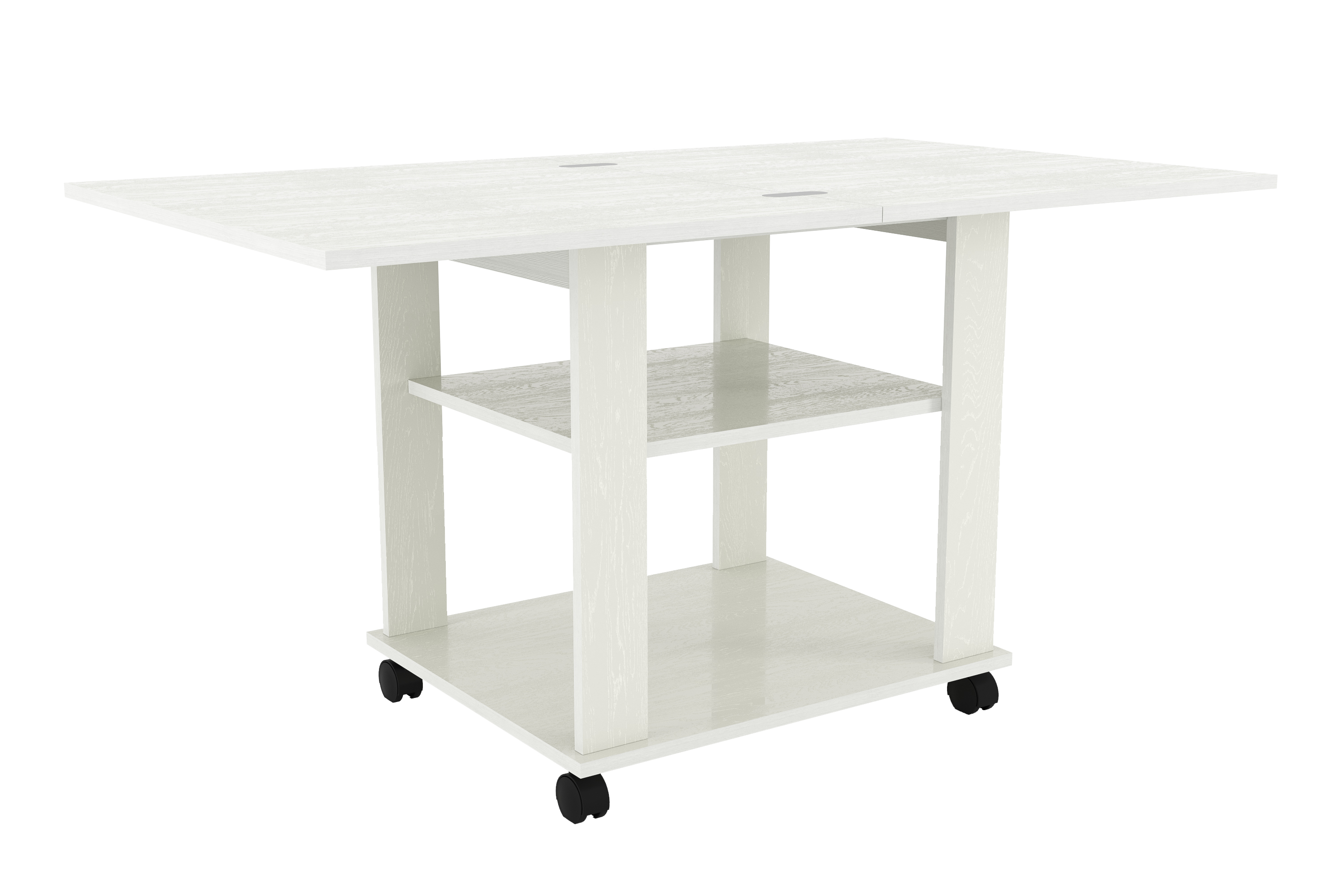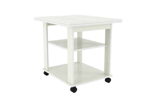 Благодаря поворотному механизму и подвижному соединению столешниц его можно раскладывать для увеличения площади. Если планируется частое использование мебели в различных комнатах, то колеса облегчат перемещение. Все механизмы конструкции обладают простым использованием.