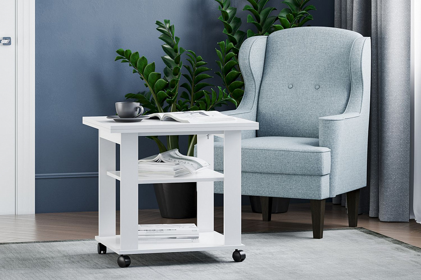 Привлекательный, стильный и компактный журнальный стол "Консул" органично впишется в интерьер даже самой маленькой комнаты. Универсальная модель подойдёт к любому по стилю интерьеру. В собранном виде его часто используют в качестве тумбочек, подставок под цветы или фотографии. Несомненный плюс – это наличие полки, которой можно пользоваться в разложенном и сложенном виде. За считанные секунды компактный журнальный стол увеличивается в два раза по габаритам, становясь просторной зоной для приёма гостей.