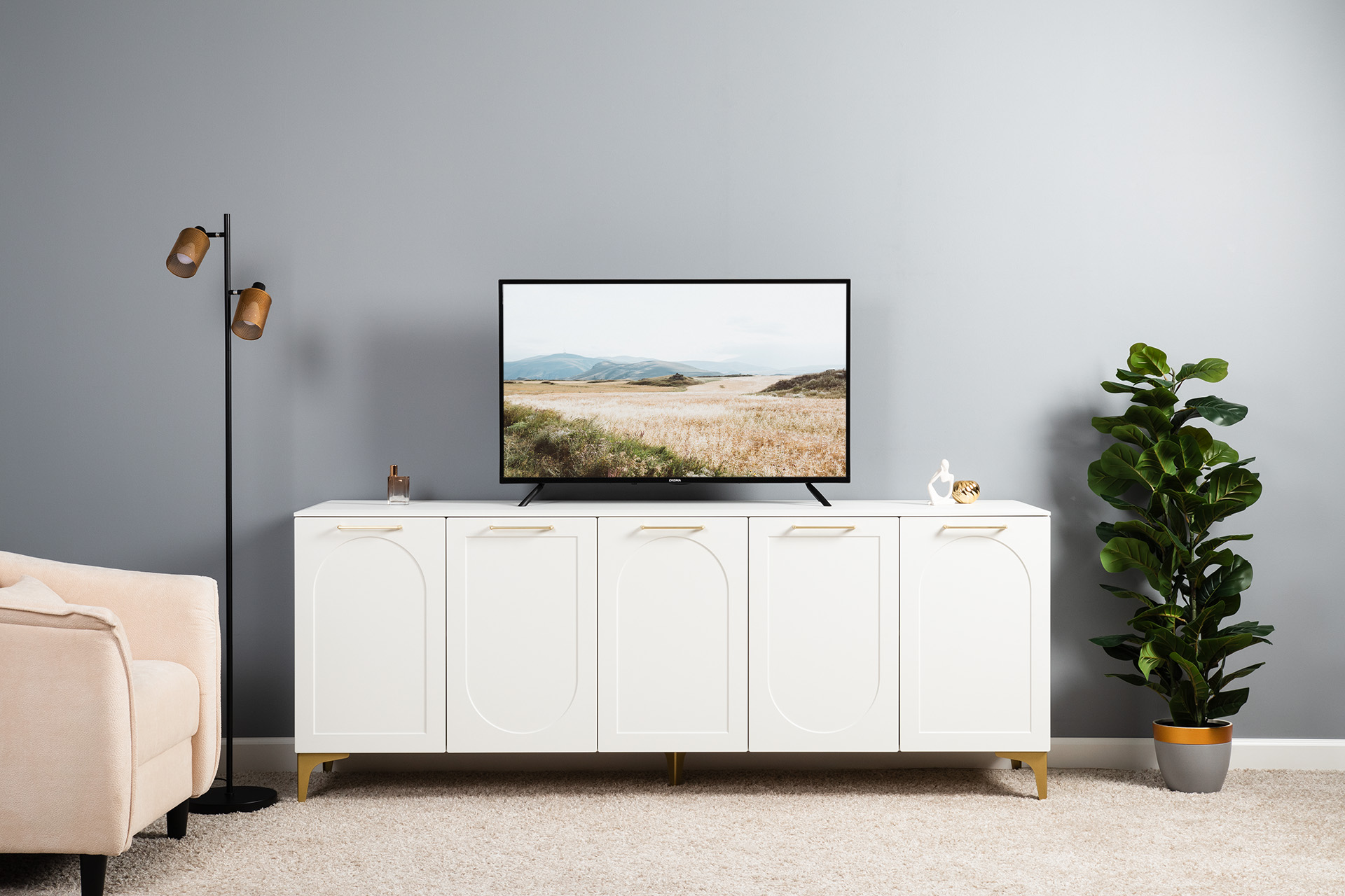Тумба под ТВ Монтесито 16.66 Белый PE шагрень, белая шагрень 4101 ПВХ